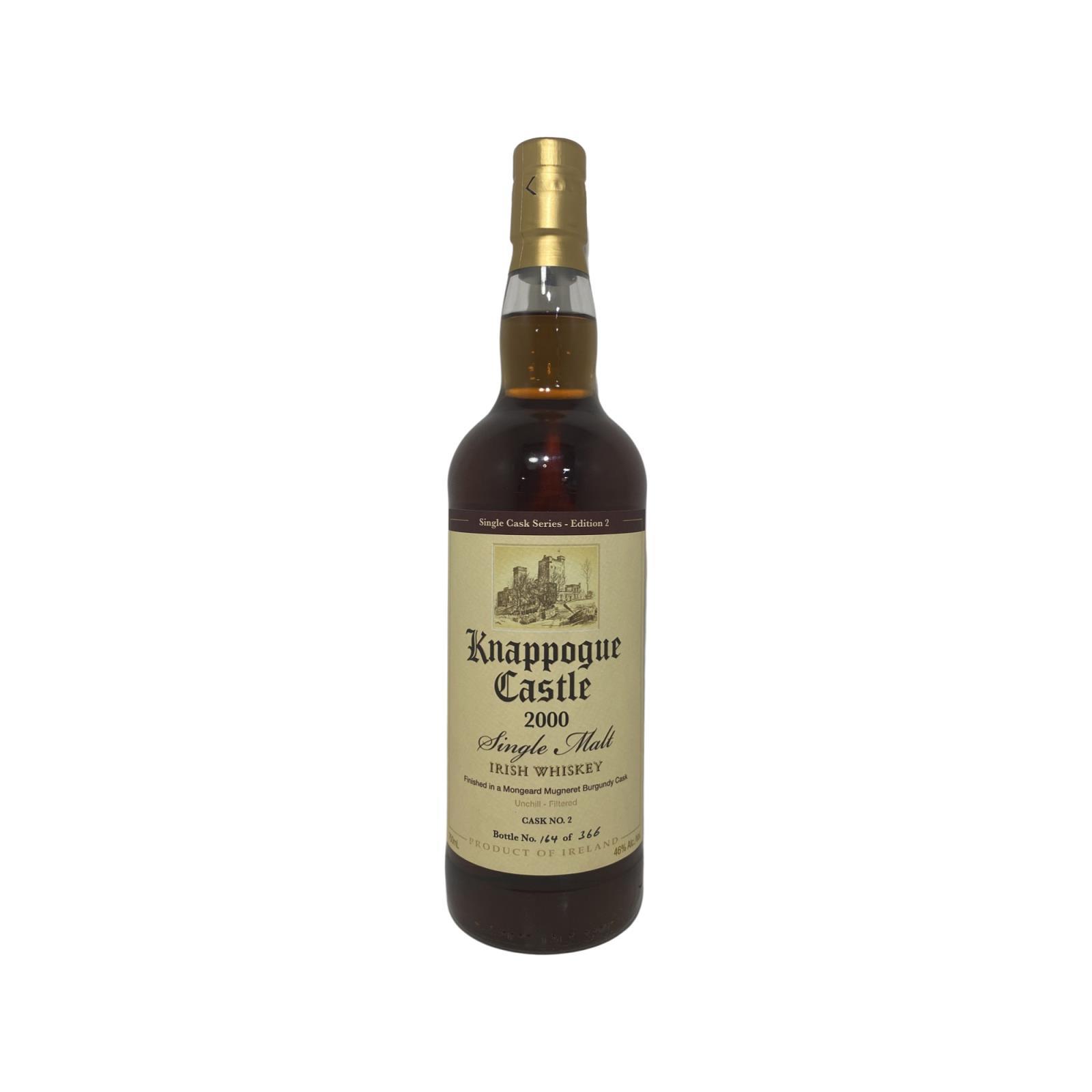 This is the first such bottling in the single cask series from Knappogue Castle.The whiskey was distilled in 2000 and initially matured in a Bourbon cask before being decanted into Marco de Bartoli barrel in October 2012, it was uncasked in Octobe r2014.This comes packaged with a wooden gift box.Cask No. 2.