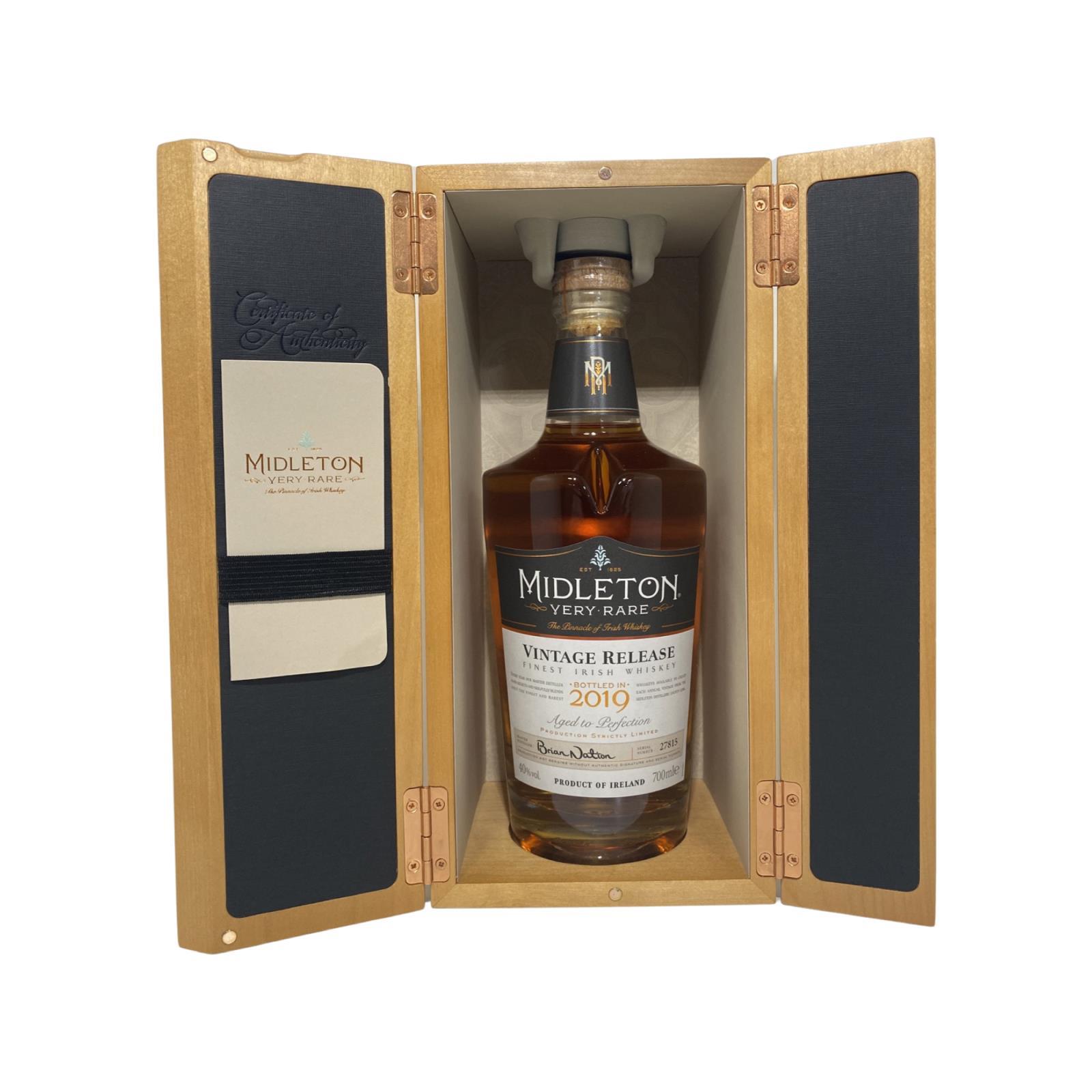 The Midleton Very Rare 2019, is a bottling brought out by the Midleton Distillery in Co. Cork. The ‘Midleton Very Rare’ range was launched in 1984 and a new vintage has been released every year since then. Barry Crockett started off the ‘Midleton Very Rare’ range while he was the Master Distiller of Midleton Distillery, in 2013 Barry Crockett retired from his role of Master Distiller. From 2014 onwards Brian Nation has been creating the ‘Midleton Very Rare’ range, maintaining its role as standard-bearer and pinnacle of Irish Whiskey. The bottle and gift box in great condition also include the cert and distillery invite. Bottle number 27815