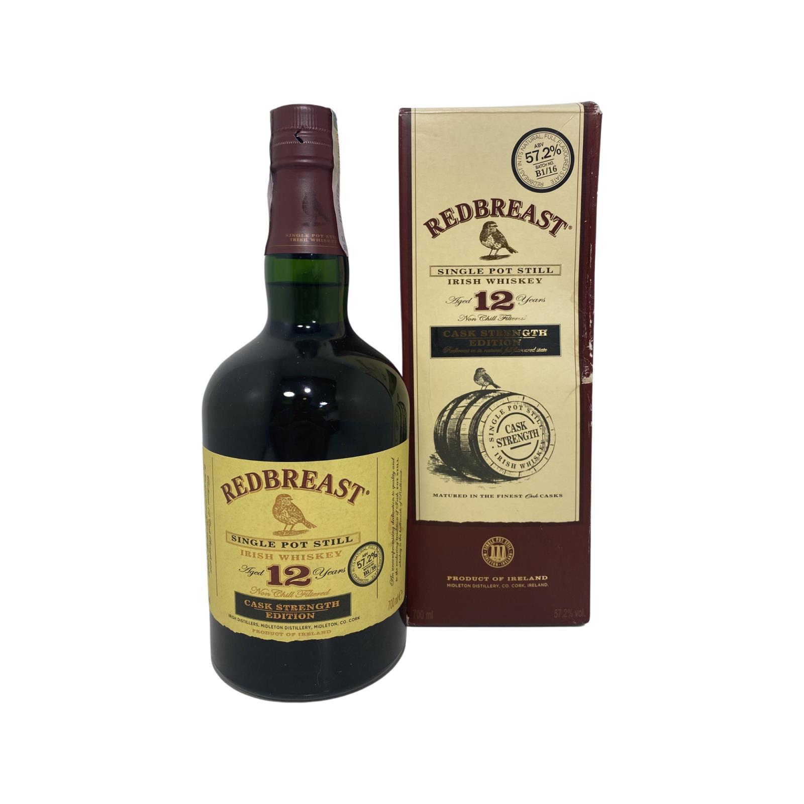 The award-winning Redbreast Cask Strength 12 Year Old. The Cask Strength has perhaps been one of the most favourably received and won 'Irish Whiskey of the Year' in the 2013 Irish Whiskey Awards. Most of the maturation is done in sherry casks but with careful selection so that the sherry character does not overpower the whiskey. The pot still content really shines through which explains why it has been winning so many awards.