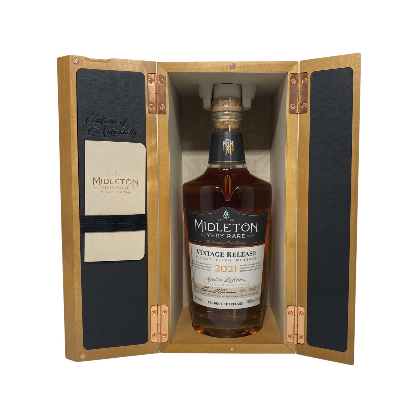 The 2021 edition to Ireland's most premium and beloved whiskey series; Midleton Very Rare. This is the 38th installment and the first release under Kevin O' Gorman appointed Master Distiller of the Midleton Distillery in 2020. Both the bottle and gift box are in very good condition, certificate and distillery invite are also included. Bottle number 2022