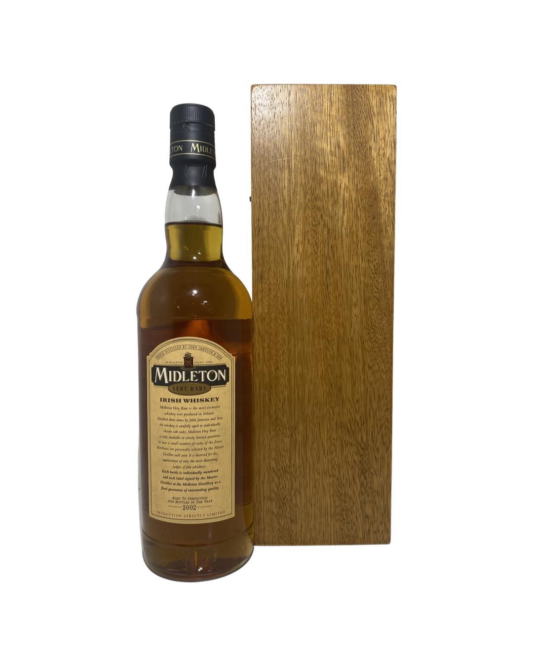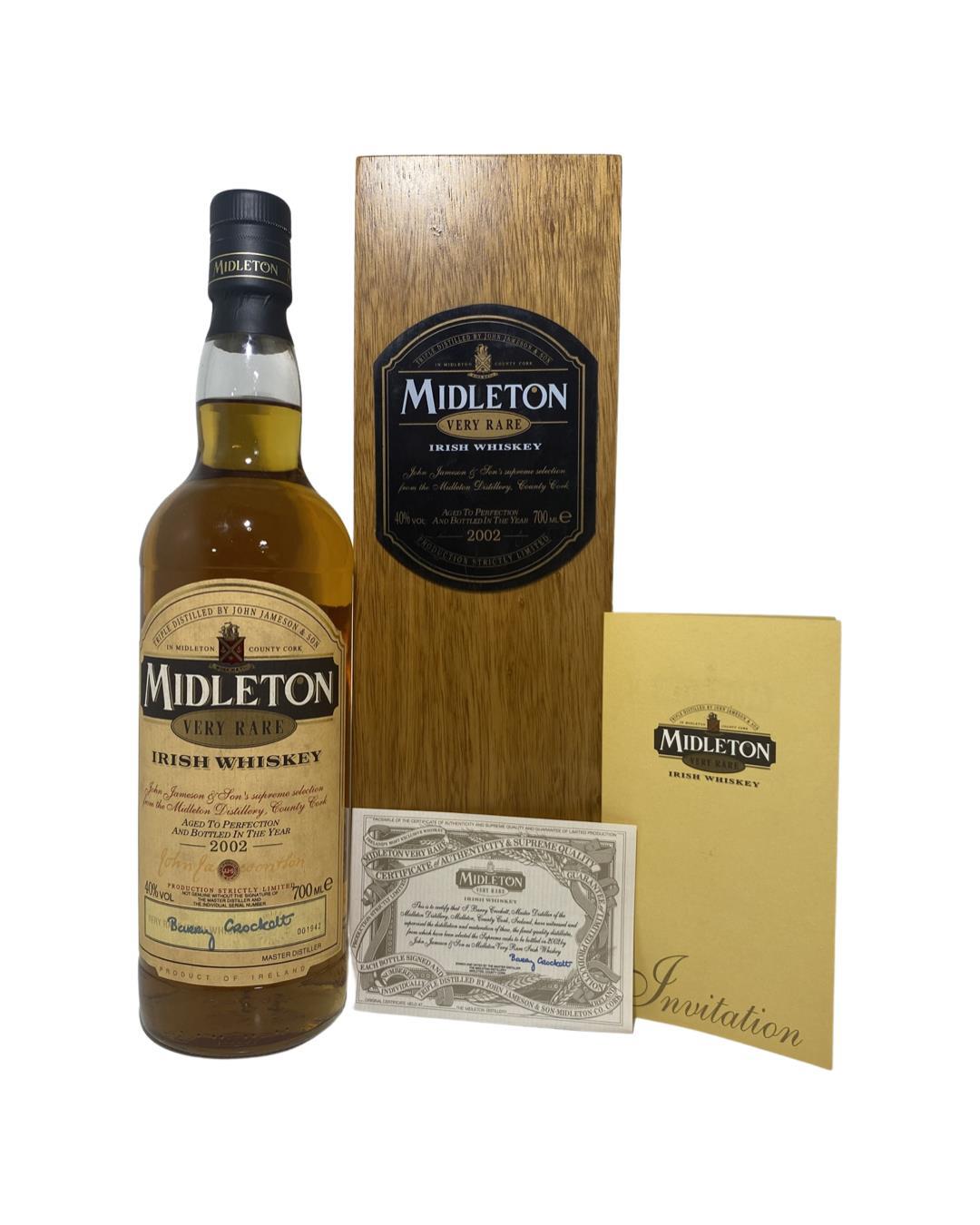 The Midleton Very Rare 2002, is a bottling brought out by the Midleton Distillery in Co. Cork. The ‘Midleton Very Rare’ range was launched in 1984 and a new vintage has been released every year since then. Barry Crockett started off the ‘Midleton Very Rare’ range while he was the Master Distiller of Midleton Distillery.The Bottle and box are in great condition. Bottle Number 1942