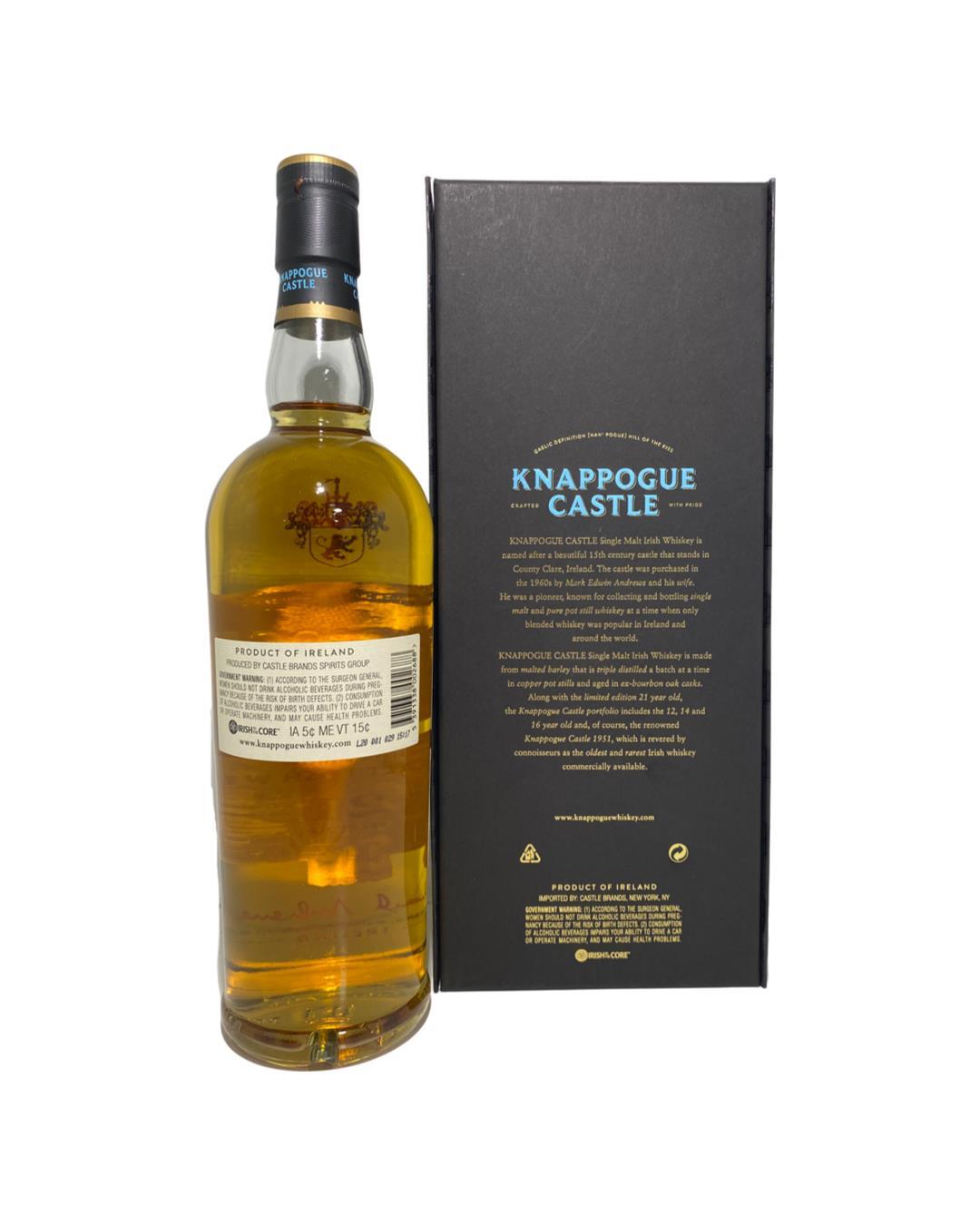 Knappogue 21 is a limited-edition single malt Irish whiskey, with only 1,200 bottles produced. First put into casks in 1994 and 1996, this marriage of two single malts - aged 21 and 23 years - is made exclusively from malted barley. Distilled in copper pot stills and matured in B1 bourbon casks, this expression is nonchill filtered and bottled at 92 proof.