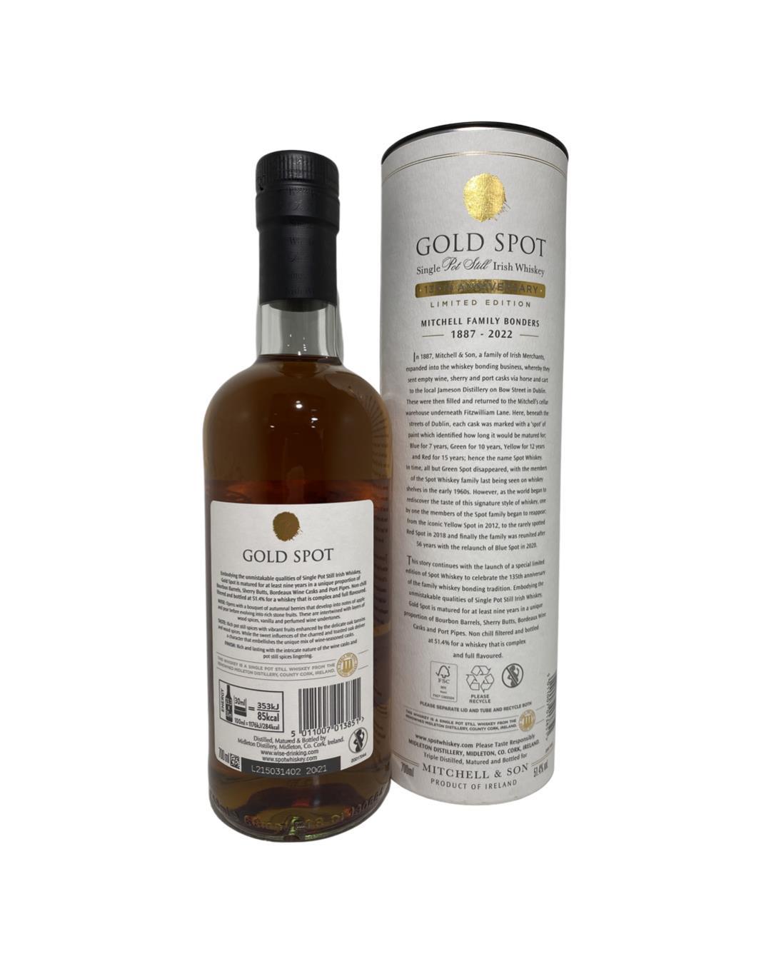 A brilliant bundle of 2 hard to get Spot Whiskeys this is a combination of blue spot and Gold Spot. Blue Spot being the highly anticipated collaboration from Irish Distillers and Mitchells & Sons, Blue Spot 7 Year Old Cask Strength, has finally arrived! The revival of the Blue Spot marks the end of a 56 year wait since the last recorded bottling of the old Blue Spot in 1964. Building on the bourbon and sherry maturation the new Blue Spot also contains whiskey aged in carefully selected Madiera casks, made in a cooperage in the north of Portugal and then sent to the island of Madeira. Bottled at cask strength, with an annual changing of abv this is Batch 2. The latest release from the spot range and a cracker of a whiskey at that Gold Spot is matured for at least nine years in Bourbon Barrels, Sherry Butts, Bordeaux Wine Casks and Port Pipes. Non chill filtered and bottled at 51.4% ABV for a whiskey that is complex and full flavoured. For anyone who was a whiskey live im sure you went to get a sample. If you missed out then be sure not to a second time around.
