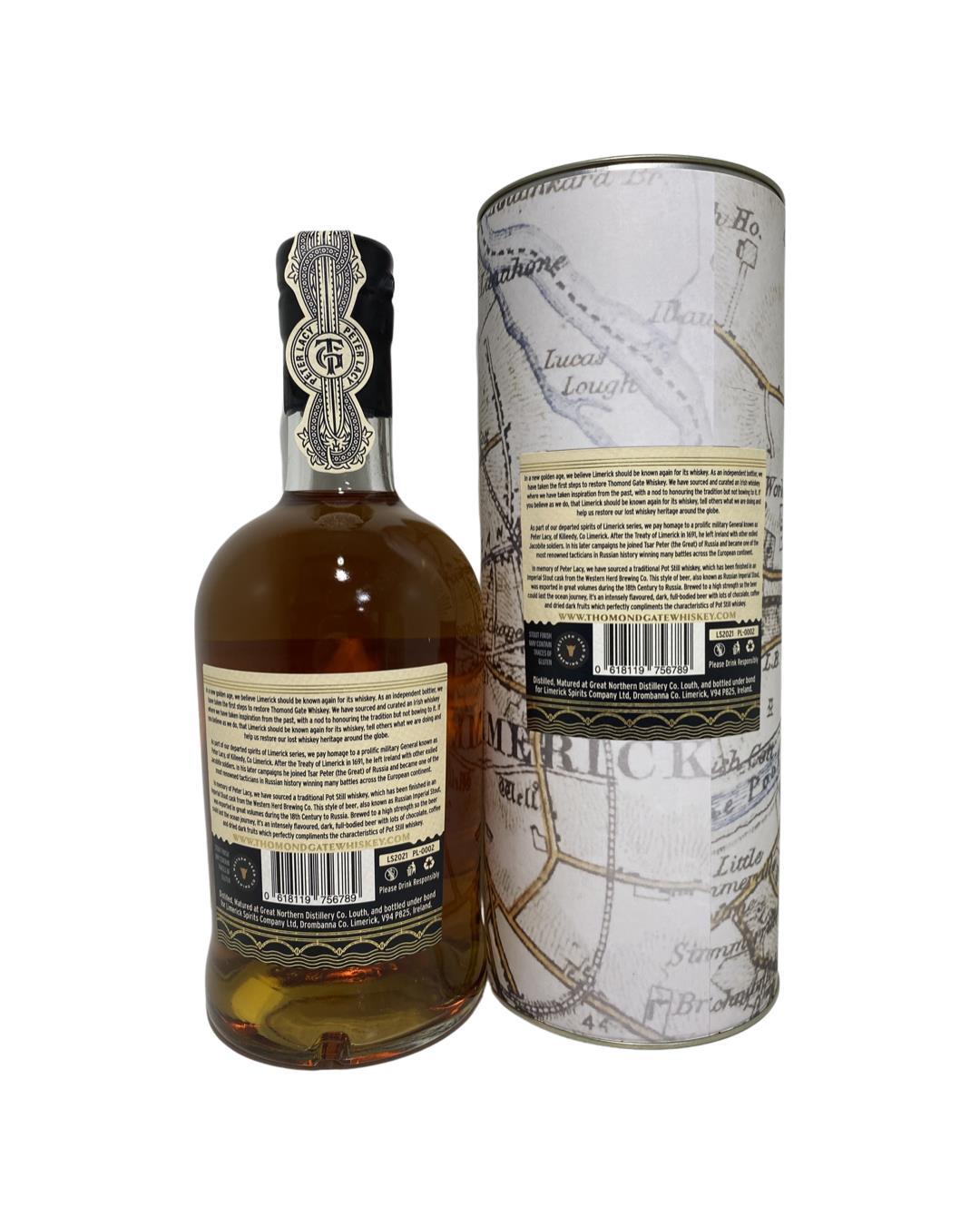 As part of the departed spirits of Limerick series. This pays homage to a prolific millitary general known as Peter Lacy. He left Ireland and in his later campaigns joined Tsar Peter of Russia tho currently this might want to be forgotten. This whiskey was sourced from a traditional pot still distillry and finished in an imperial stout cask from Treaty City Brewery. This style of beer is also known as Russian Imperial Stout so even more fitting to the history.