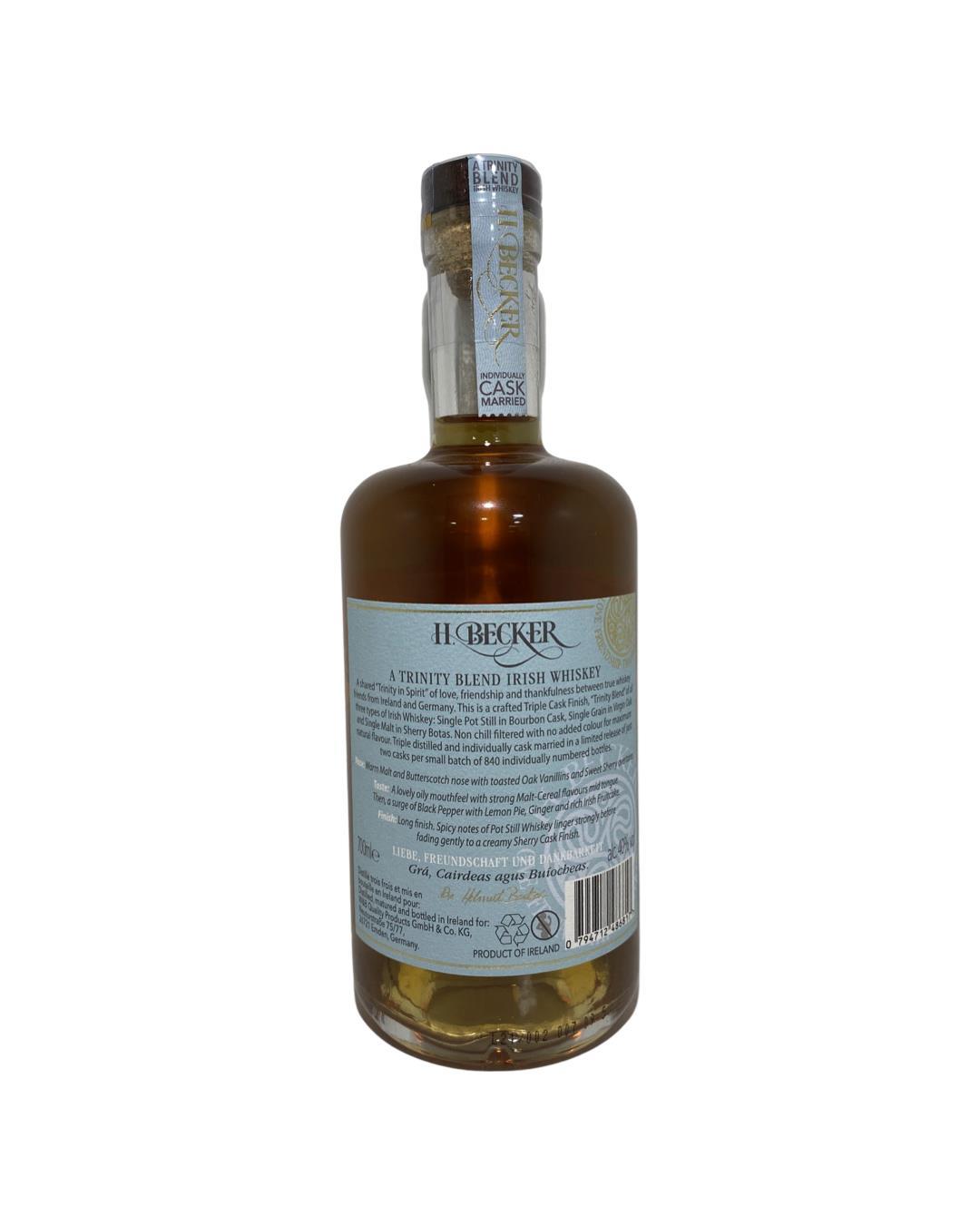 In both German and Irish on the back. Love, Friendship and Thankfulness. This is a non Chill Filtered, no added colour. This is a carefully curated blend of triple distilled single grain and sherried single malt whiskey.