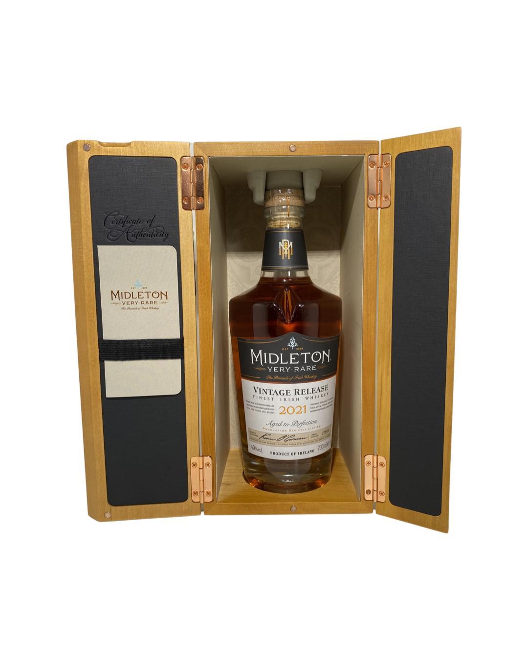The 2021 edition to Ireland's most premium and beloved whiskey series; Midleton Very Rare. This is the 38th installment and the first release under Kevin O' Gorman appointed Master Distiller of the Midleton Distillery in 2020. Both the bottle and gift box are in very good condition, certificate and distillery invite are also included. Bottle number 22193