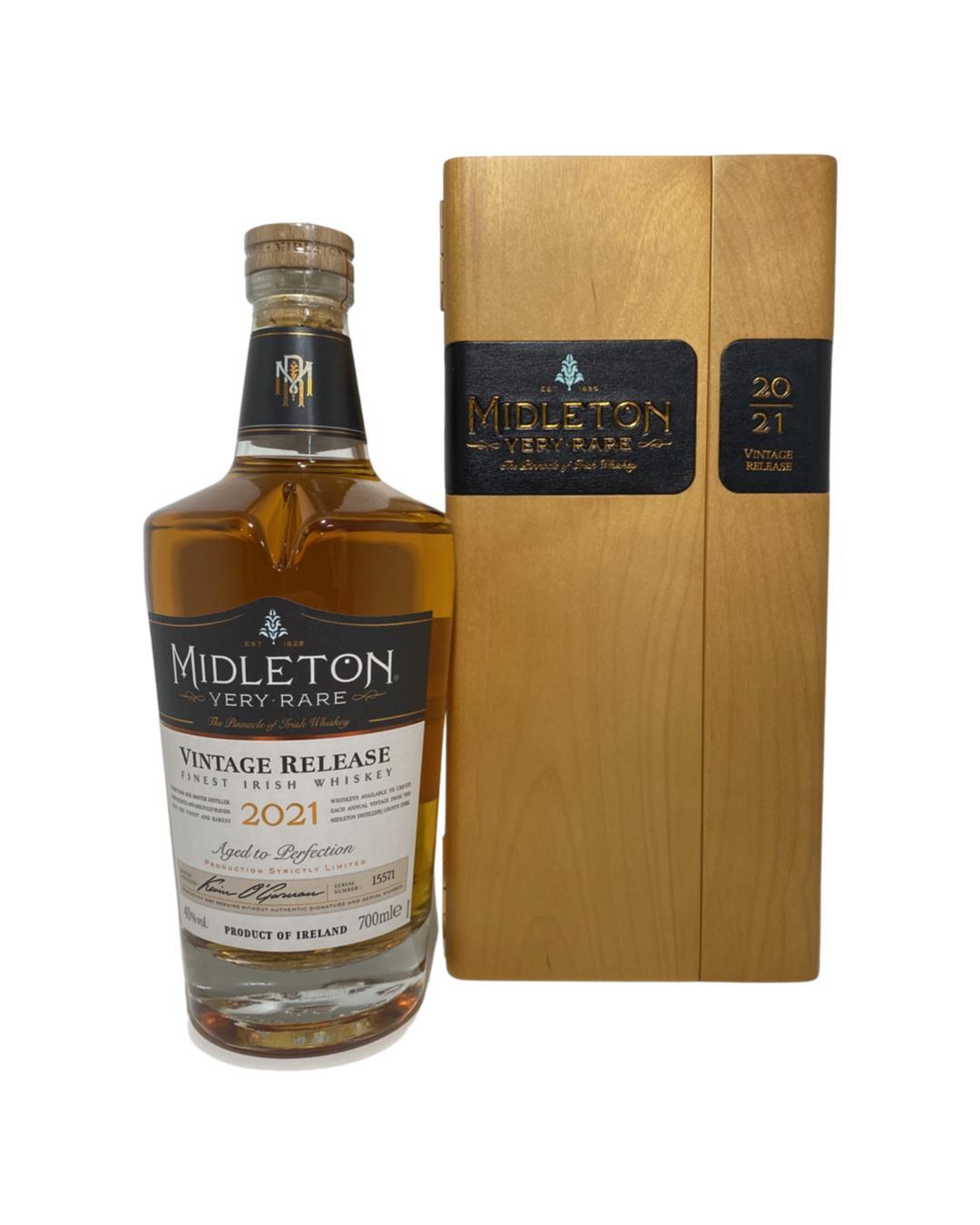 The 2021 edition to Ireland's most premium and beloved whiskey series; Midleton Very Rare. This is the 38th installment and the first release under Kevin O' Gorman appointed Master Distiller of the Midleton Distillery in 2020. Both the bottle and gift box are in very good condition, certificate and distillery invite are also included. Bottle number 15571