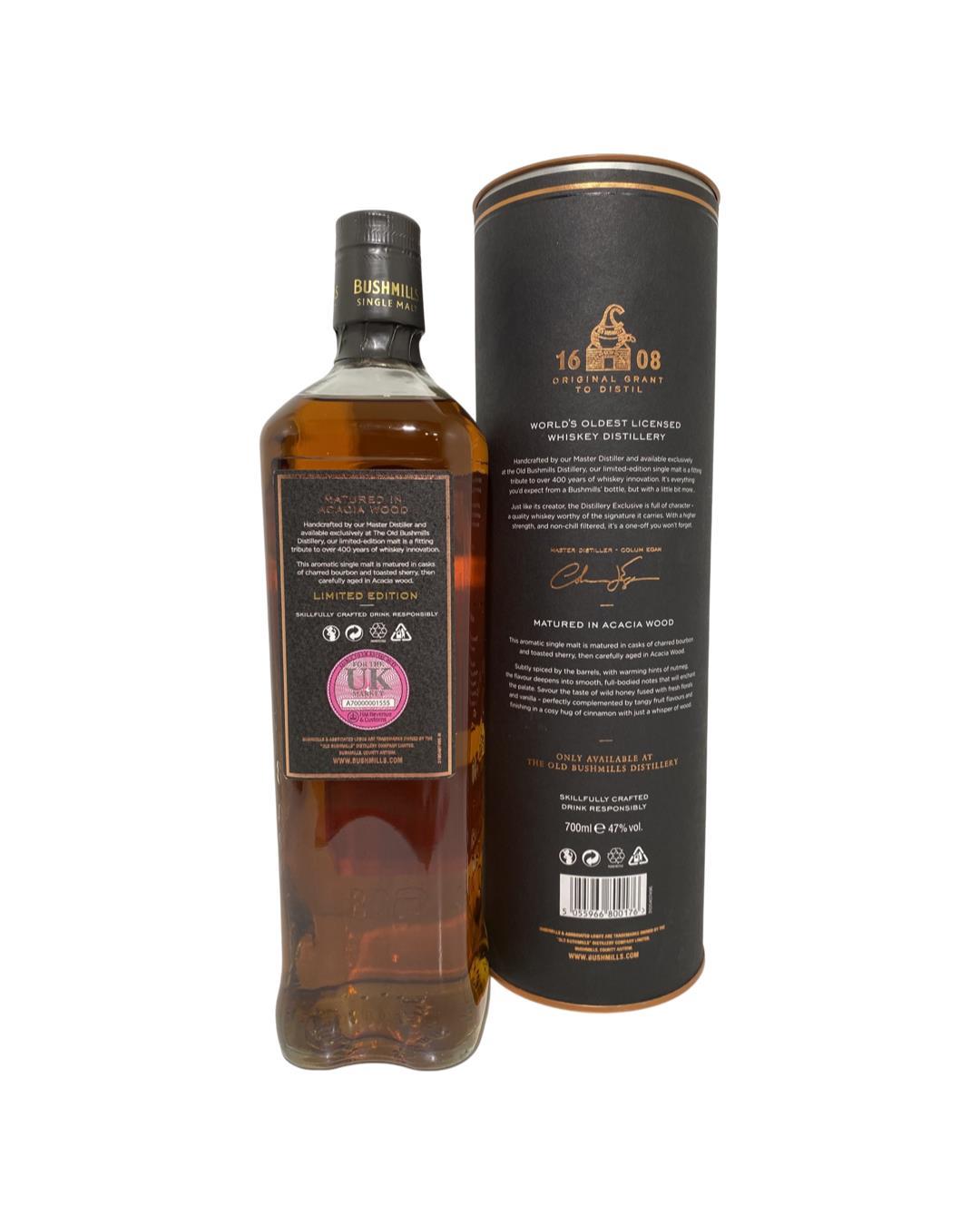 Having been first matured in charred bourbon barrels and toasted sherry casks, Bushmills then carefully age this single malt in acacia wood for over a year. Acacia wood comes from Australia and is not often seen used in whiskey aging. Certainly a unique one for the collection.