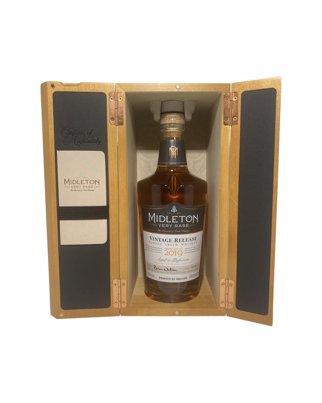 The Midleton Very Rare 2019, is a bottling brought out by the Midleton Distillery in Co. Cork. The ‘Midleton Very Rare’ range was launched in 1984 and a new vintage has been released every year since then. Barry Crockett started off the ‘Midleton Very Rare’ range while he was the Master Distiller of Midleton Distillery, in 2013 Barry Crockett retired from his role of Master Distiller. From 2014 onwards Brian Nation has been creating the ‘Midleton Very Rare’ range, maintaining its role as standard-bearer and pinnacle of Irish Whiskey. The bottle and gift box in great condition also include the cert and distillery invite. Bottle number 25134