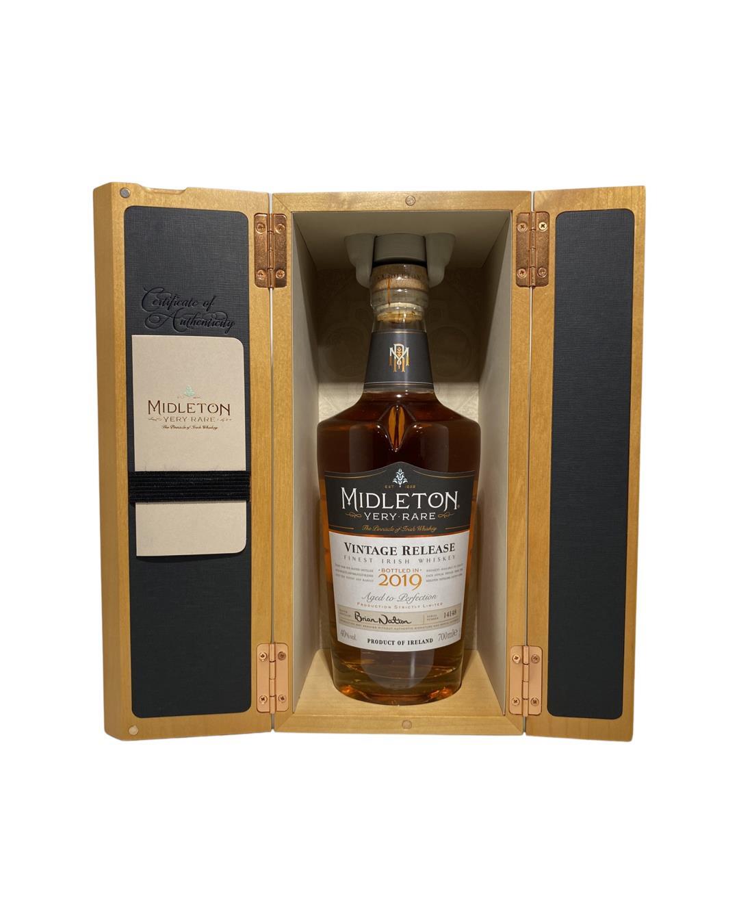 The Midleton Very Rare 2019, is a bottling brought out by the Midleton Distillery in Co. Cork. The ‘Midleton Very Rare’ range was launched in 1984 and a new vintage has been released every year since then. Barry Crockett started off the ‘Midleton Very Rare’ range while he was the Master Distiller of Midleton Distillery, in 2013 Barry Crockett retired from his role of Master Distiller. From 2014 onwards Brian Nation has been creating the ‘Midleton Very Rare’ range, maintaining its role as standard-bearer and pinnacle of Irish Whiskey. The bottle and gift box in great condition also include the cert and distillery invite. Bottle number 14148