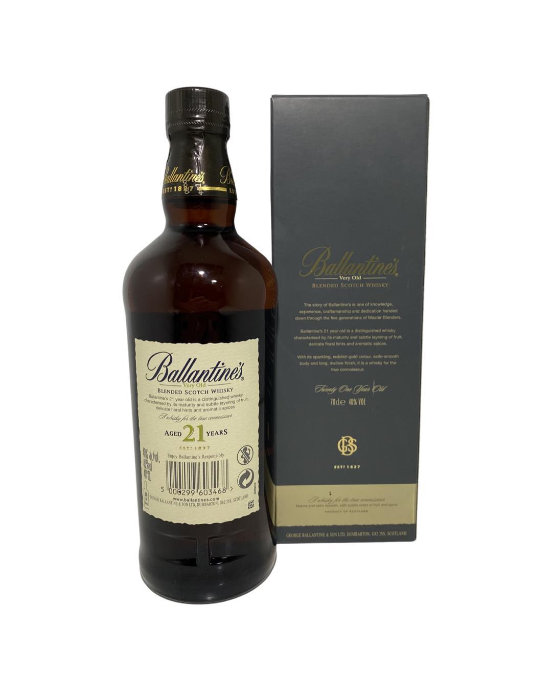Ballantine’s 21 is a blended scotch whisky produced in Scotland and aged for a minimum of 21 years. The award-winning whisky is made from a blend of malt and grain whiskies that hail from the Scottish regions of Speyside, Islay, Highlands, and Lowlands.