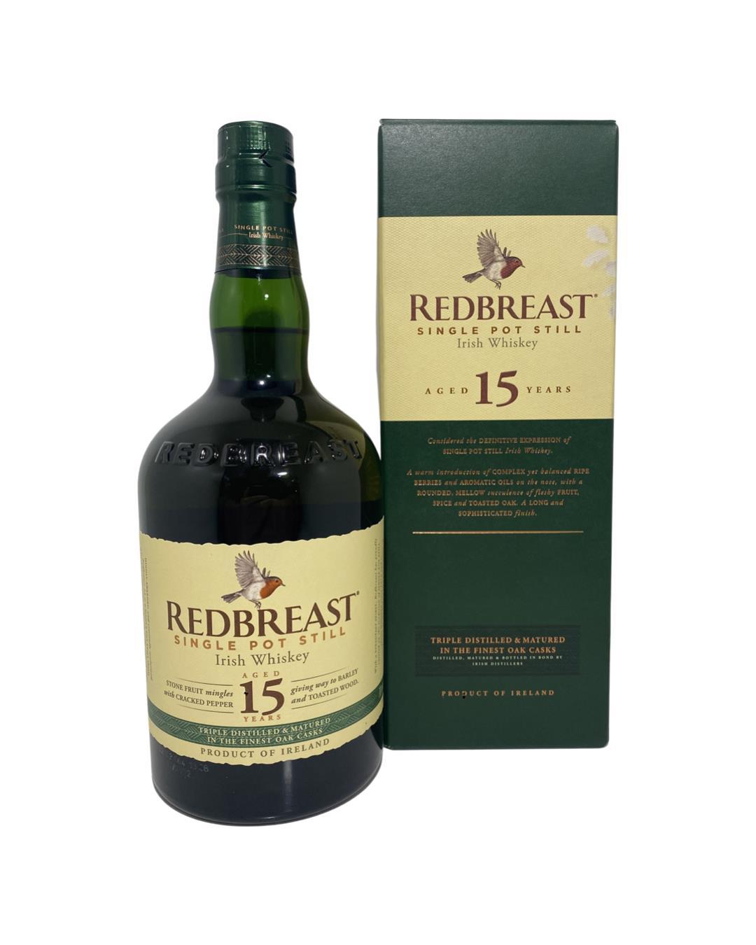 The 15 year old expression of Redbreast was initially a one-off release that was eventually made a permanent part of the range due to its huge popularity. This is one of the richest, and heaviest Irish pot still whiskeys. The bottling is vatted from whiskeys aged between 15 and 19 years old and the cask selection is from 1st fill bourbon and sherry barrels. Redbreast 15 Year Old has won many awards including a Gold Medal at the International Spirits Challenge 2010.
