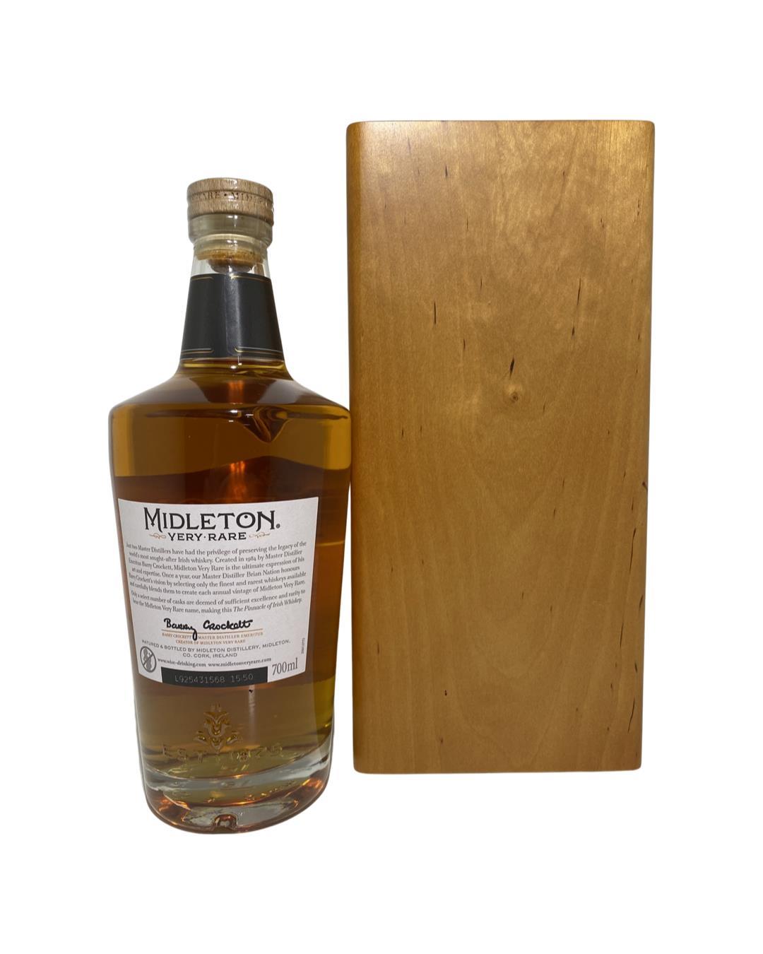 The Midleton Very Rare 2019, is a bottling brought out by the Midleton Distillery in Co. Cork. The ‘Midleton Very Rare’ range was launched in 1984 and a new vintage has been released every year since then. Barry Crockett started off the ‘Midleton Very Rare’ range while he was the Master Distiller of Midleton Distillery, in 2013 Barry Crockett retired from his role of Master Distiller. From 2014 onwards Brian Nation has been creating the ‘Midleton Very Rare’ range, maintaining its role as standard-bearer and pinnacle of Irish Whiskey. The bottle and gift box in great condition also include the cert and distillery invite. Bottle number 14105