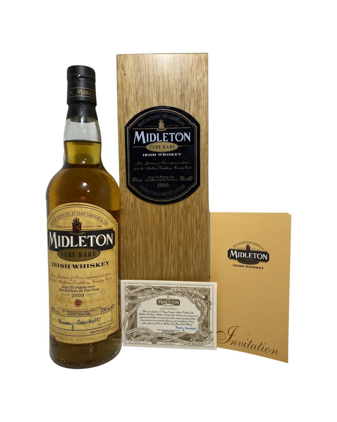 The Midleton Very Rare 2009, is a bottling brought out by the Midleton Distillery in Co. Cork. The ‘Midleton Very Rare’ range was launched in 1984 and a new vintage has been released every year since then. Barry Crockett started off the ‘Midleton Very Rare’ range while he was the Master Distiller of Midleton Distillery, The bottle and box are in excellent condition and include the distillery invite and certificate. Bottle 6566