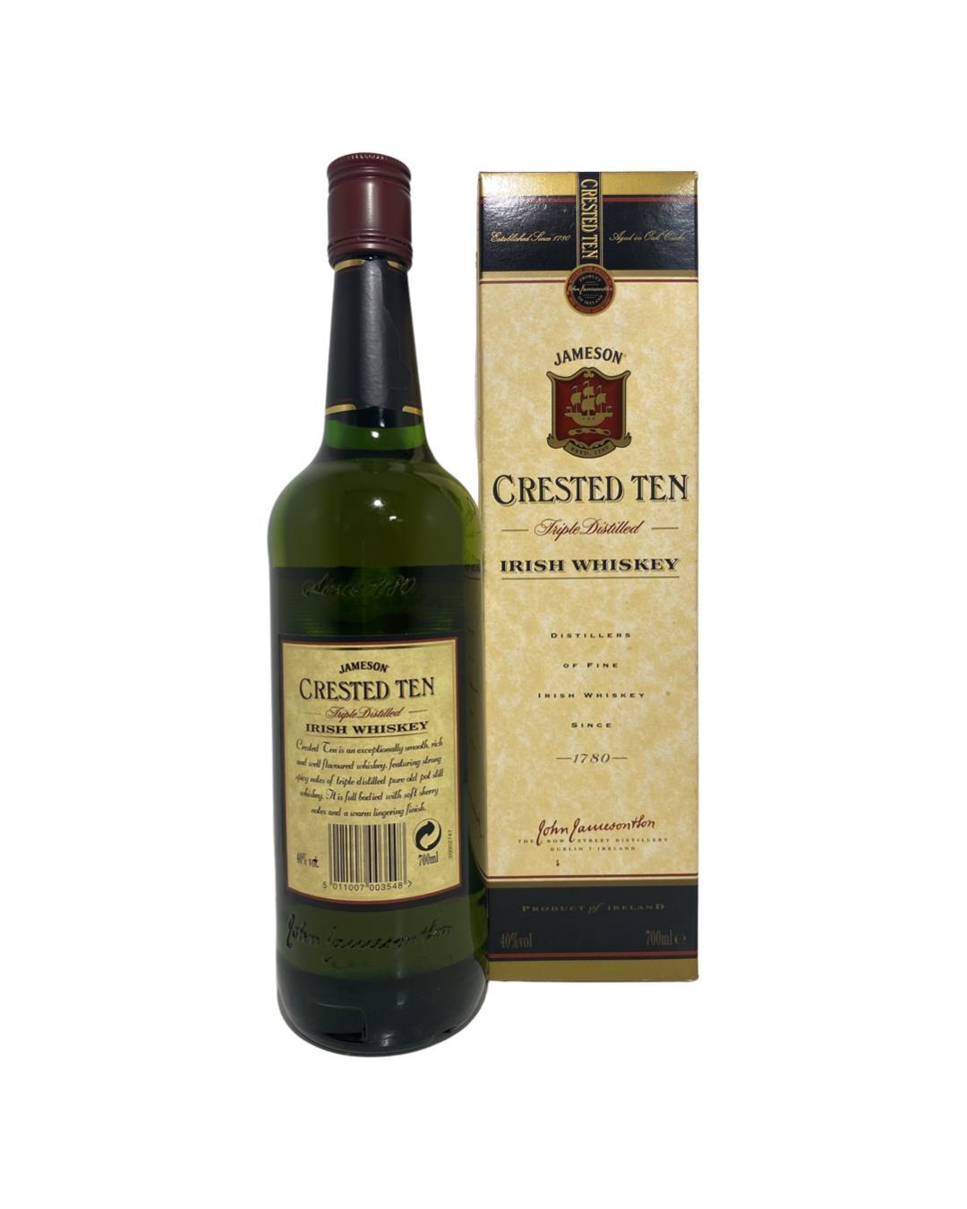This is the older version of Jameson Crested Ten (now relabelled as simply 'Crested').Its been said amongst the whiskey community that thi is a far better example than the standard Jameson, it has just a bit more flavour and complexity, meaning it is a little easier to drink straight up without a mixer or ice! The blend composition is very similar to the regular Jameson but has a little more ageing. Some extra use of sherry casks also adds some nice weight and spicy fruitiness.