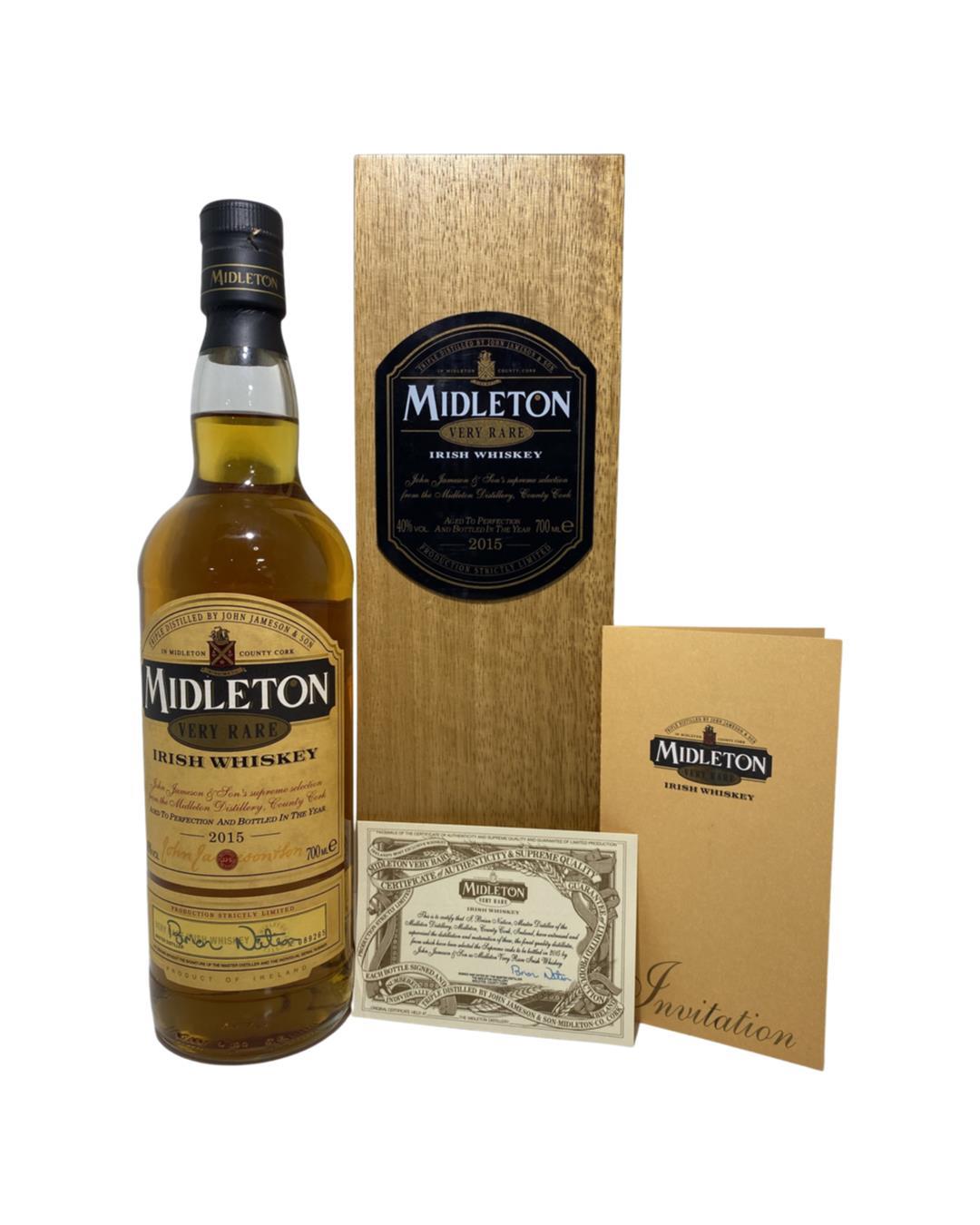 The Midleton Very Rare 2015, is a bottling brought out by the Midleton Distillery in Co. Cork. The ‘Midleton Very Rare’ range was launched in 1984 and a new vintage has been released every year since then. Barry Crockett started off the ‘Midleton Very Rare’ range while he was the Master Distiller of Midleton Distillery, in 2013 Barry Crockett retired from his role of Master Distiller. From 2014 onwards Brian Nation has been creating the ‘Midleton Very Rare’ range, maintaining its role as standard-bearer and pinnacle of Irish Whiskey. The bottle and gift box in great condition also include the cert and distillery invite. Bottle number 89265