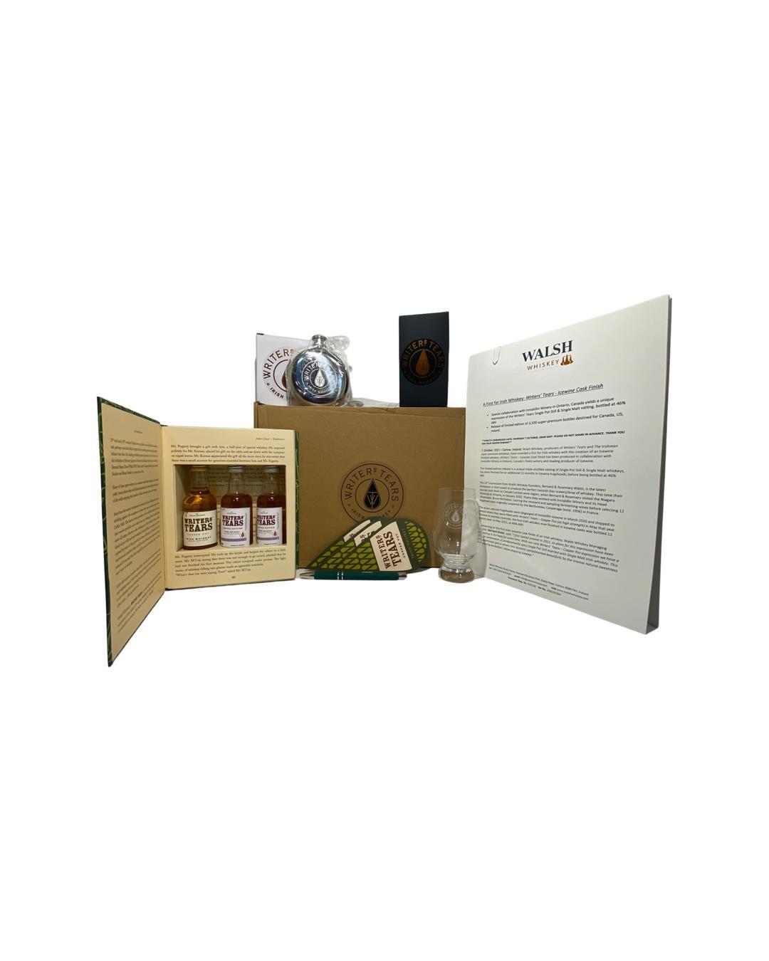 This is the sample back sent to influnecers and people in the industry. This is full of branded merchandise from Writers tears along with a sample pack of the ice wine. This 23rd expression from Walsh Whiskey founders, Bernard & Rosemary Walsh is the latest innovation in their quest to produce the perfect taoscán [tay-scawn]/drop of whiskey. An exciting marriage of Pot Still and Single Malt Irish Whiskey accented perfectly with its sweet stone fruit flavour imparted by an icewine finish! A complex expression brought to you in collaboration with the magnificent Inniskillin Winery, Ontario, Canada.