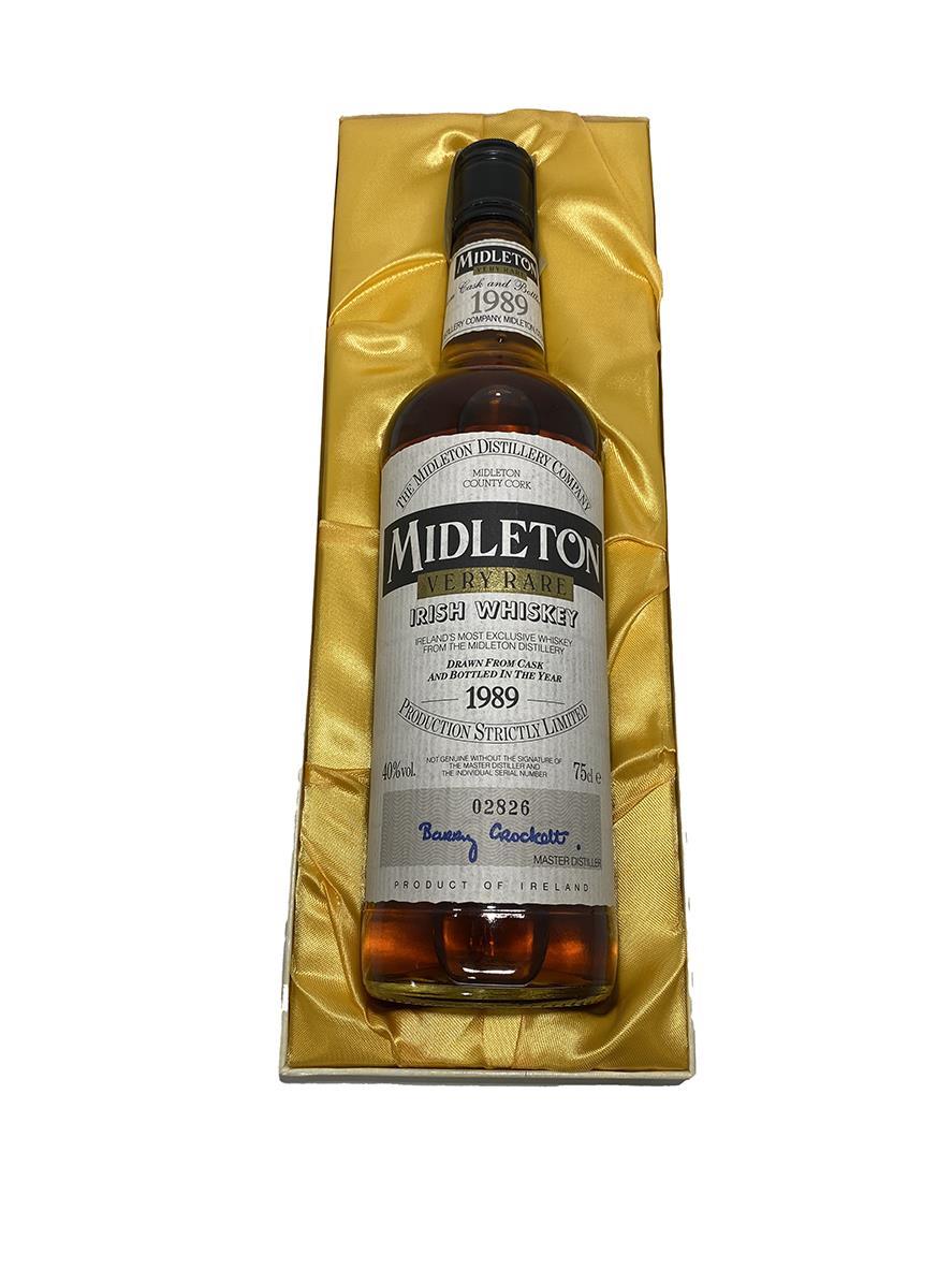 The Midleton Very Rare 1989, is a bottling brought out by the Midleton Distillery in Co. Cork. The ‘Midleton Very Rare’ range was launched in 1984 and a new vintage has been released every year since then. Barry Crockett started off the ‘Midleton Very Rare’ range while he was the Master Distiller of Midleton Distillery, The bottle and box are in excellent condition and include the distillery invite and certificate. Bottle number 2826
