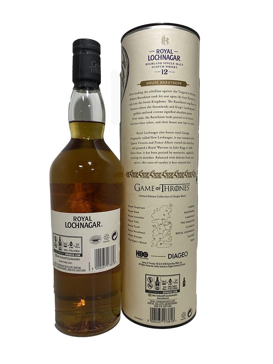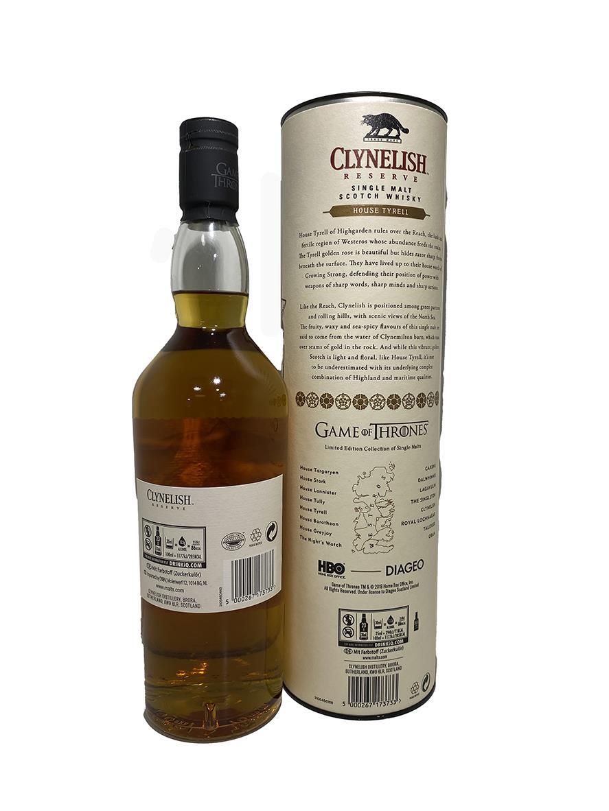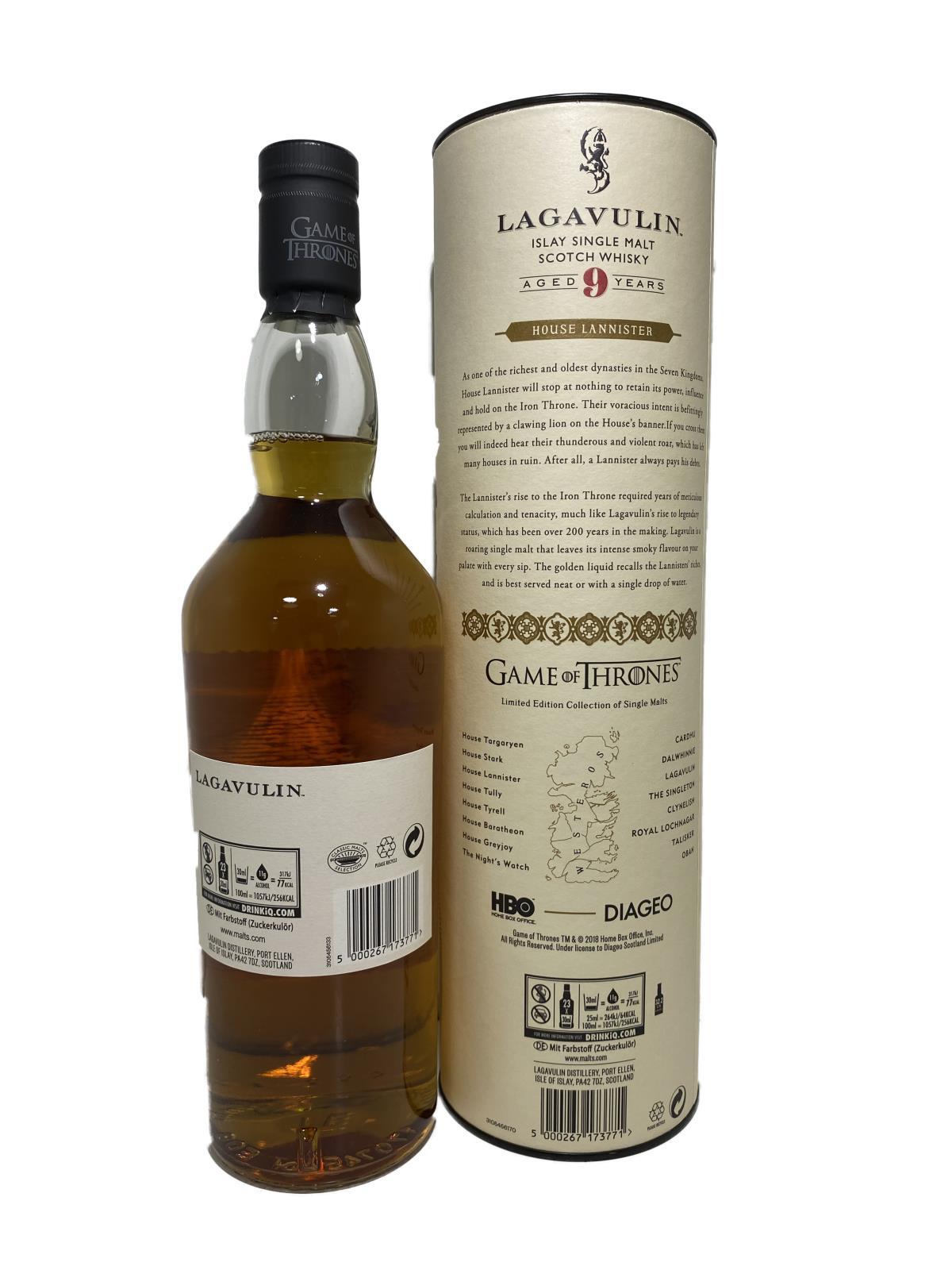 To celebrate the eighth and final season of the critically-acclaimed TV series, Game of Thrones, Diageo and HBO have released a limited-edition collection of Single Malt Scotch Whiskies. The collection features eight scotch whiskies, each paired with one of the iconic Houses of Westeros, as well as the Night's Watch, giving fans an authentic taste of the Seven Kingdoms and beyond.Included within the Game of Thrones Single Malt Scotch Whisky Collection are the following:Game of Thrones House Greyjoy 70cl - Talisker Select Reserve, Game of Thrones House Targaryen 70cl - Cardhu Gold Reserve,Game of Thrones House Lannister 70cl - Lagavulin 9 Year Old,Game of Thrones House Baratheon 70cl - Royal Lochnagar 12 Year Old,Game of Thrones House Tyrell 70cl - Clynelish Reserve,Game of Thrones House Tully 70cl - Singleton of Glendullan Select,Game of Thrones House Stark 70cl - Dalwhinnie Winter's Frost,Game of Thrones The Night's Watch 70cl - Oban Bay Reserve.