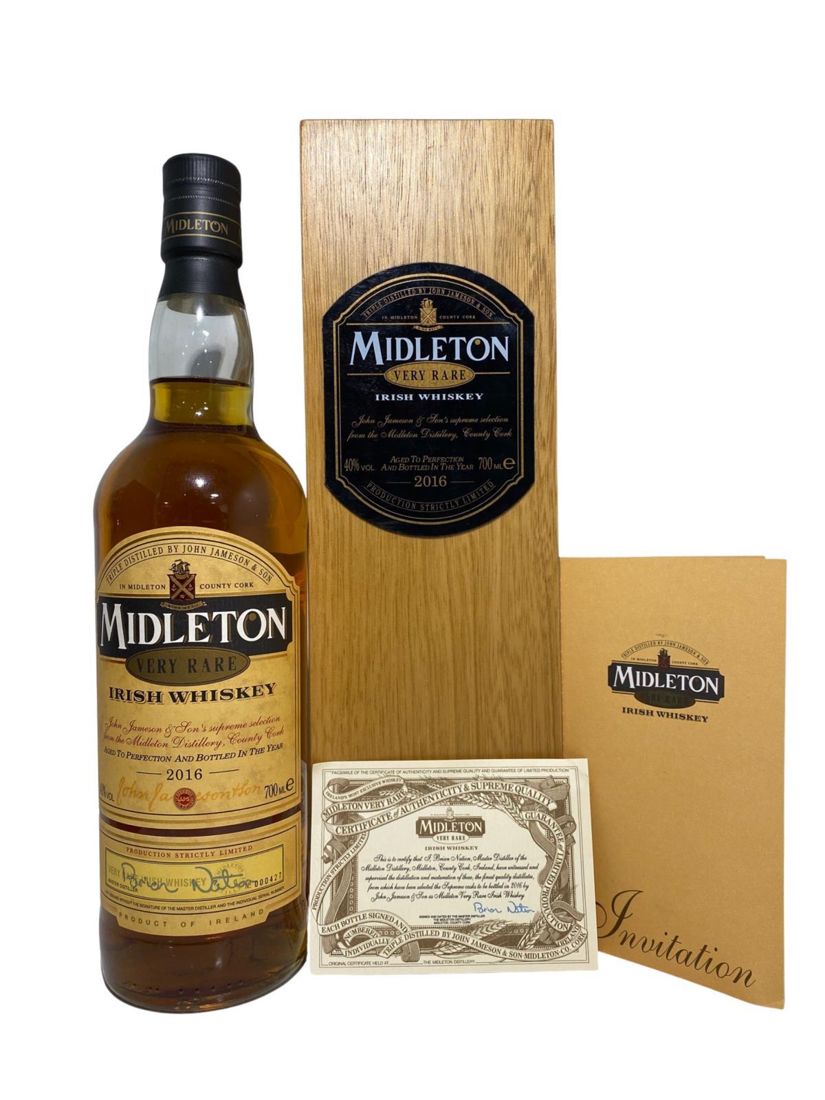 The Midleton Very Rare 2016, is a bottling brought out by the Midleton Distillery in Co. Cork. The ‘Midleton Very Rare’ range was launched in 1984 and a new vintage has been released every year since then. Barry Crockett started off the ‘Midleton Very Rare’ range while he was the Master Distiller of Midleton Distillery, The bottle and box are in excellent condition and include the distillery invite and certificate.
