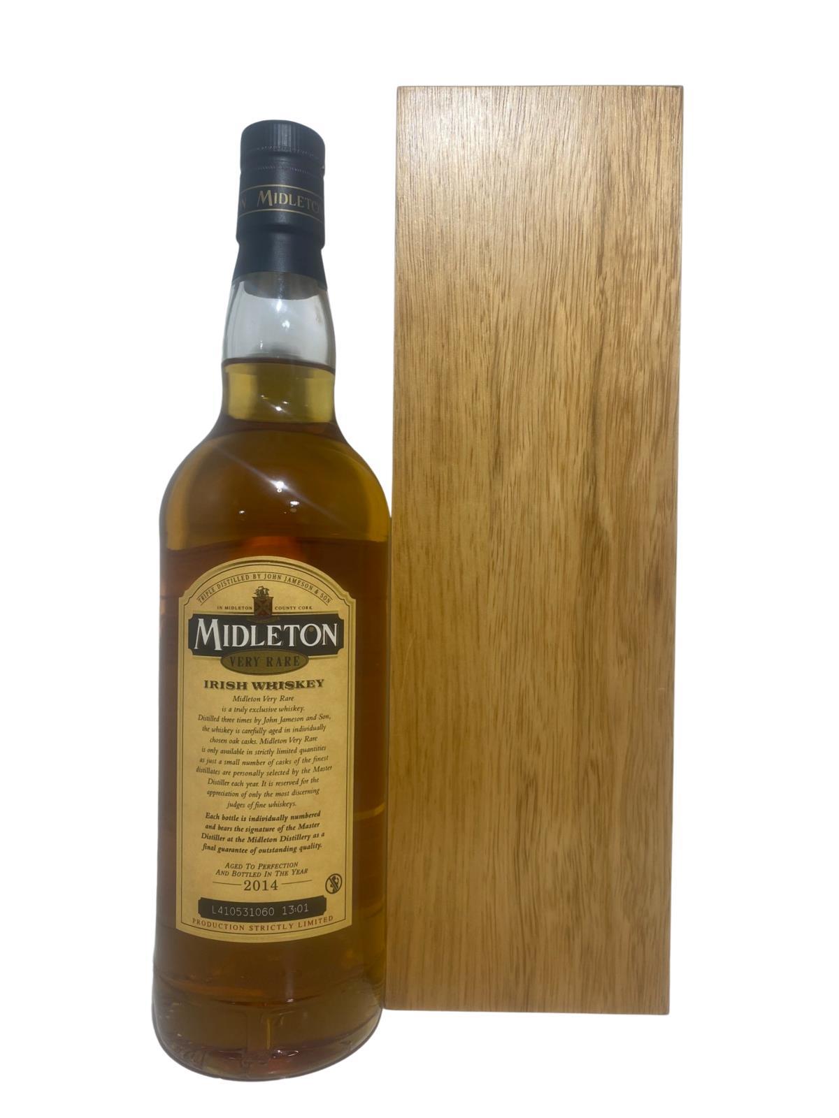 The Midleton Very Rare 2014, is a bottling brought out by the Midleton Distillery in Co. Cork. The ‘Midleton Very Rare’ range was launched in 1984 and a new vintage has been released every year since then. Barry Crockett started off the ‘Midleton Very Rare’ range while he was the Master Distiller of Midleton Distillery, in 2013 Barry Crockett retired from his role of Master Distiller. From 2014 onwards Brian Nation has been creating the ‘Midleton Very Rare’ range, maintaining its role as standard-bearer and pinnacle of Irish Whiskey. The bottle and gift box in great condition also include the cert and distillery invite.
