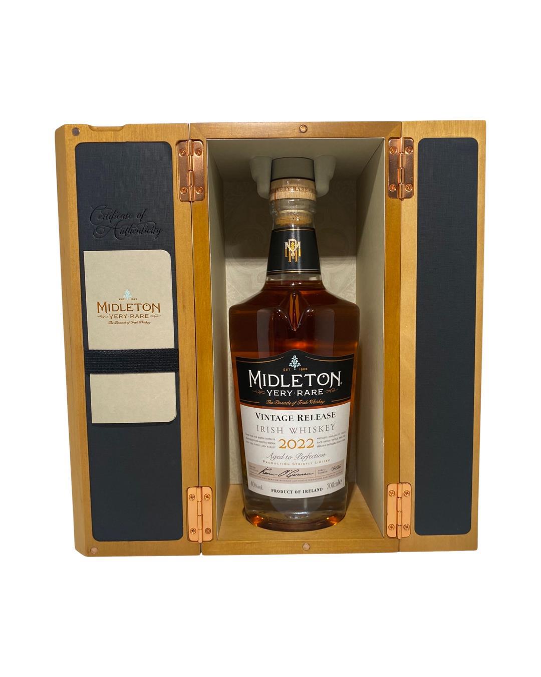 The 2022 edition to Ireland's most premium and beloved whiskey series; Midleton Very Rare. This is the 39th installment and the first release under Kevin O' Gorman appointed Master Distiller of the Midleton Distillery in 2020. Both the bottle and gift box are in very good condition, certificate and distillery invite are also included.