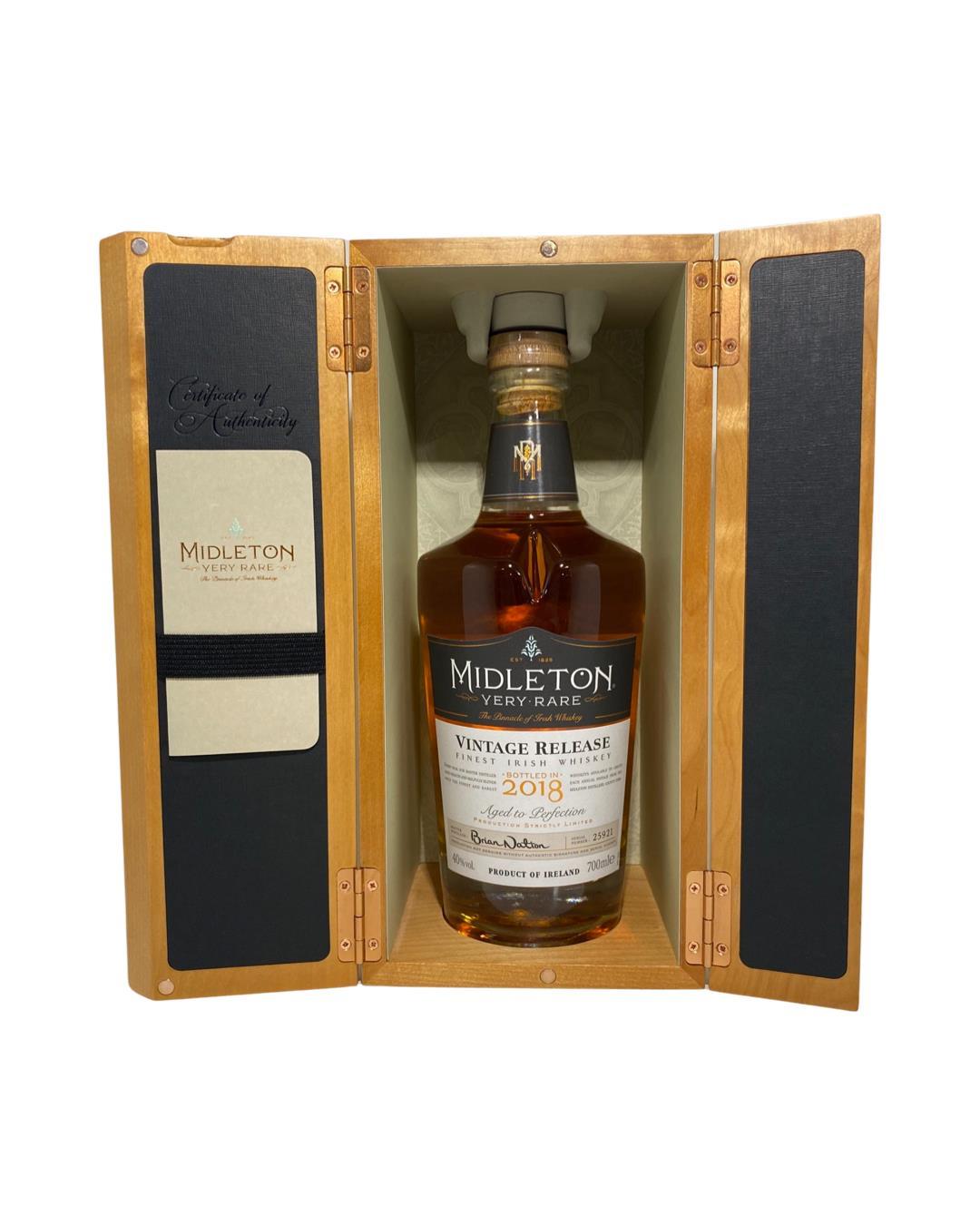 The Midleton Very Rare 2018 is part of the Midleton Very Rare collection that began in 1984 whereby a new vintage is released every year. The bottle and box are in very good condition, the certificate and distillery invite are both included.