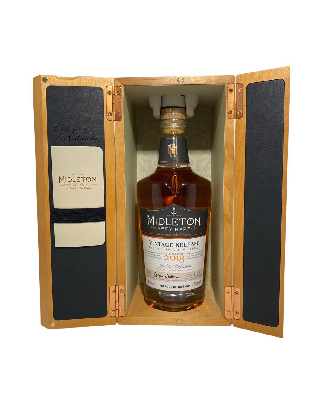 The Midleton Very Rare 2018 is part of the Midleton Very Rare collection that began in 1984 whereby a new vintage is released every year. The bottle and box are in very good condition, the certificate and distillery invite are both included.