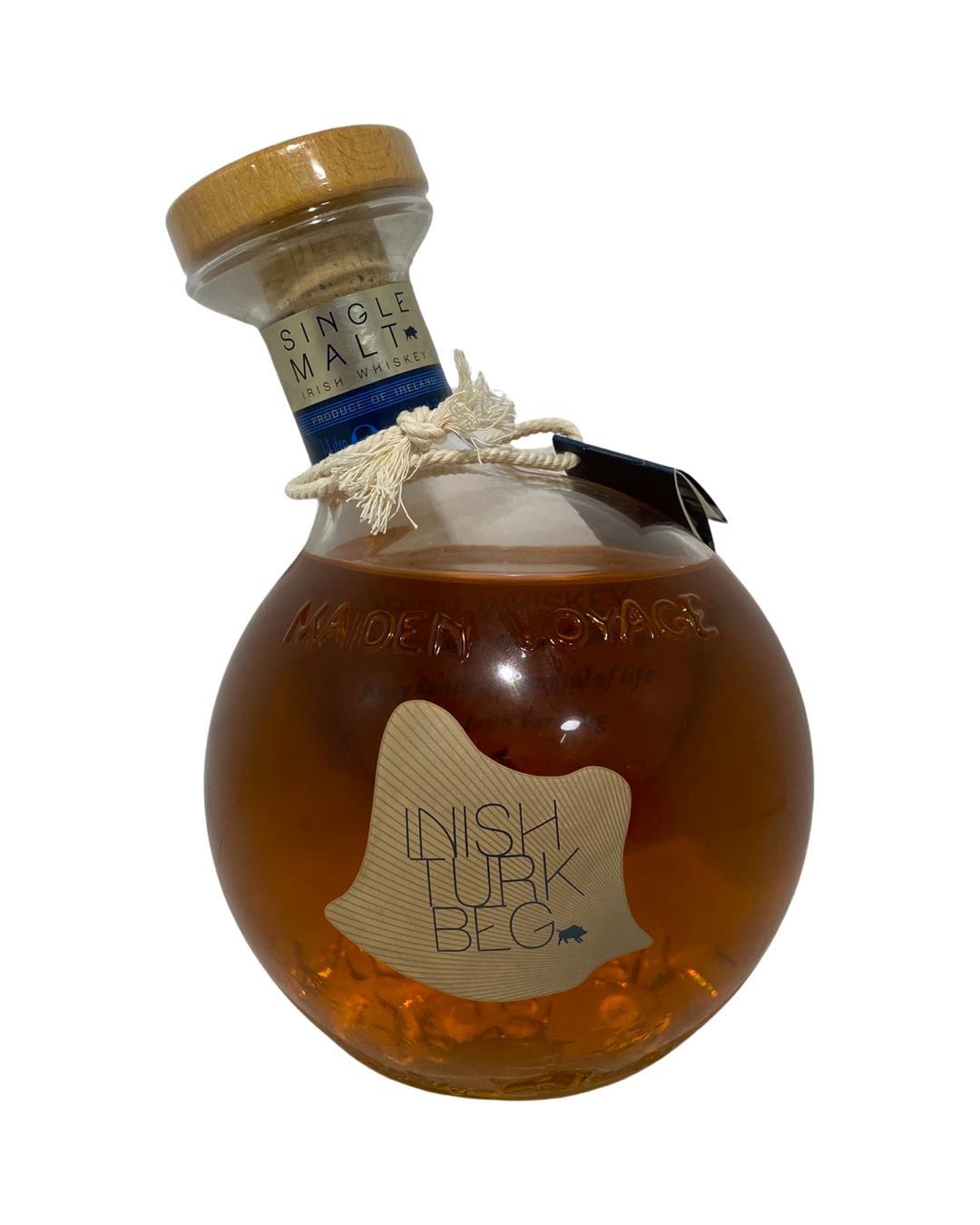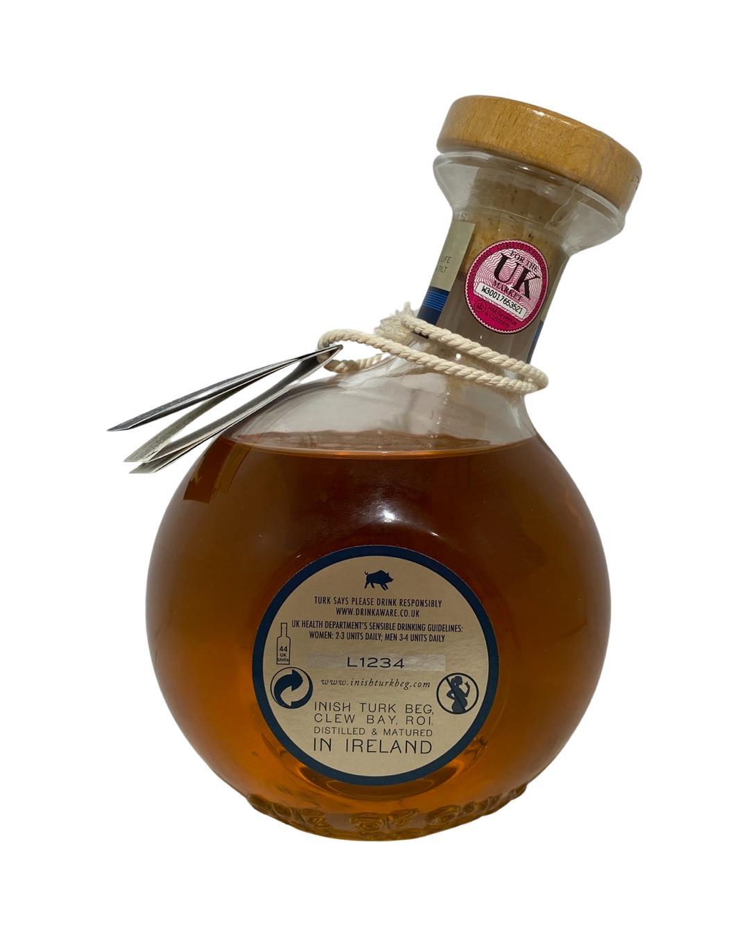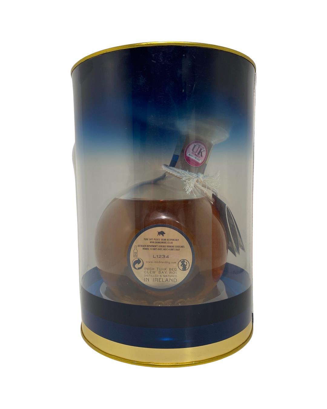 The Inish Turk Beg single malt takes its name from the island of the same name which means 'small island of the boar'. It is one of the many islands in Clew Bay on the Mayo coast. This whiskey is unique in that a final maturation was done in poitin barrels on the island itself. There were just 2888 bottles made of this 'Maiden Voyage' edition and to reflect the sea voyage of the barrels each hand blown bottle resembles a mooring buoy. "Situated off the wild, Atlantic, west coast of Ireland in County Mayo, the island of Inish Turk Beg is a place of outstanding natural beauty, constantly changing vistas and rugged land and seascapes. It’s a place of natural invigoration and inspiration where we enjoy ‘Life Vividly Lived’. Inish Turk Beg launches the first whiskey to be available outside its own shores: a release of just 2,888 “Maiden Voyage” one-litre bottles. A warm, complex and easy-drinking, 44% alcohol, aged Single Malt Irish whiskey, it’s finished in Poitin barrels that have lain on the island drinking in its unique atmosphere and climate. Each Mooring Buoy bottle is a hand-blown piece of art, partly made with sand from the island’s own beaches. And in reducing it from cask to bottle strength, rainwater collected on the island itself, after thousands of miles of being scrubbed clean across the Atlantic, is used. Live Life at a Tilt, with Inish Turk Beg’s Maiden Voyage.