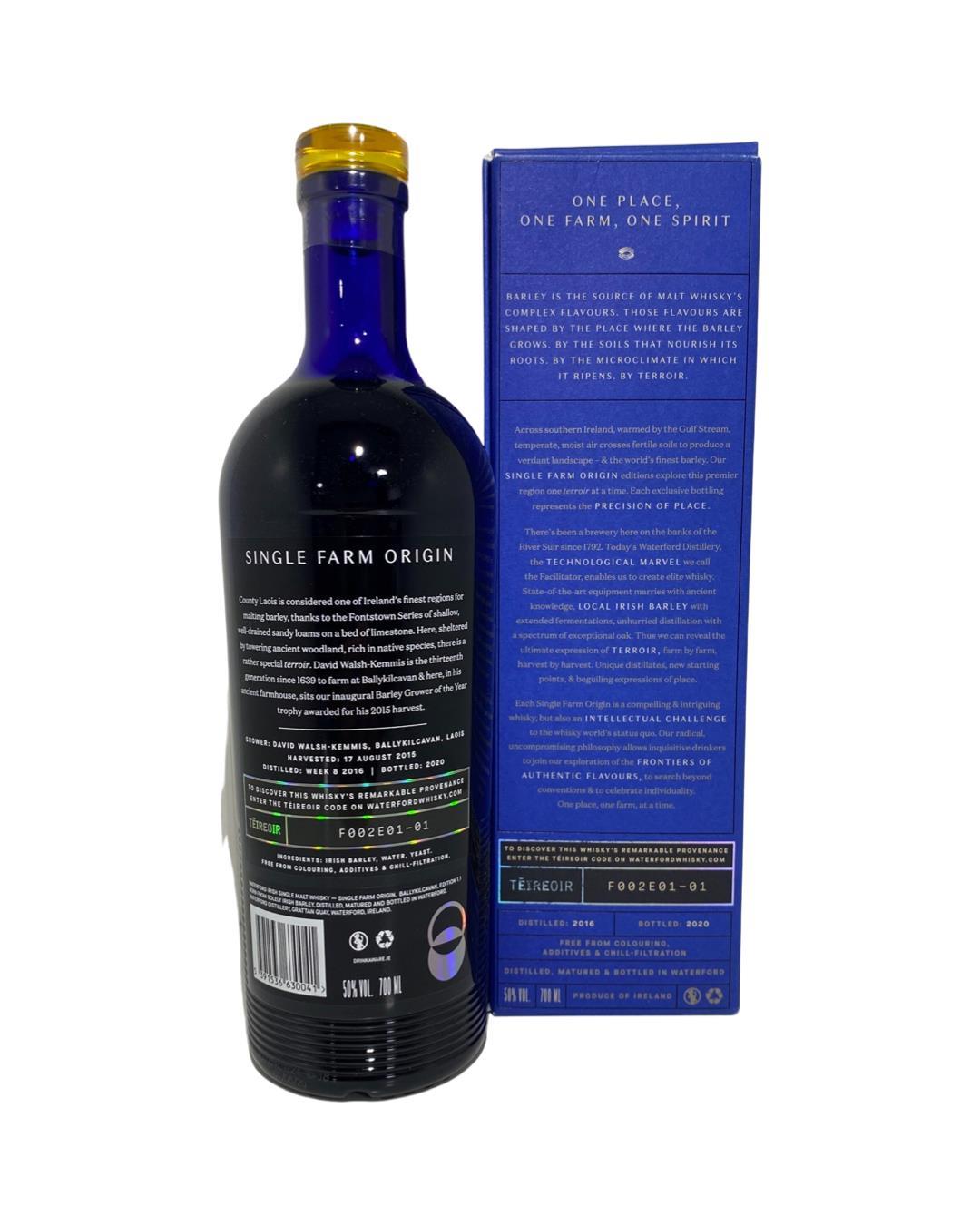 Ballykilcavan is the second ever barley supplier to be distilled for Waterford whiskies Single farm distillation. Based near Stadbally in Co laois it is said to be one of the best areas in the country to produce barely with its unique terroir providing all the best required nutrients and protections that the barley needs. A whiskey that tastes of Cooked bananas with brown sugar, and plenty of heat. Mulled wine and cinnamon. Along with a dry, oily lasting finish. cetainly a young whisjey with a great flavour.
