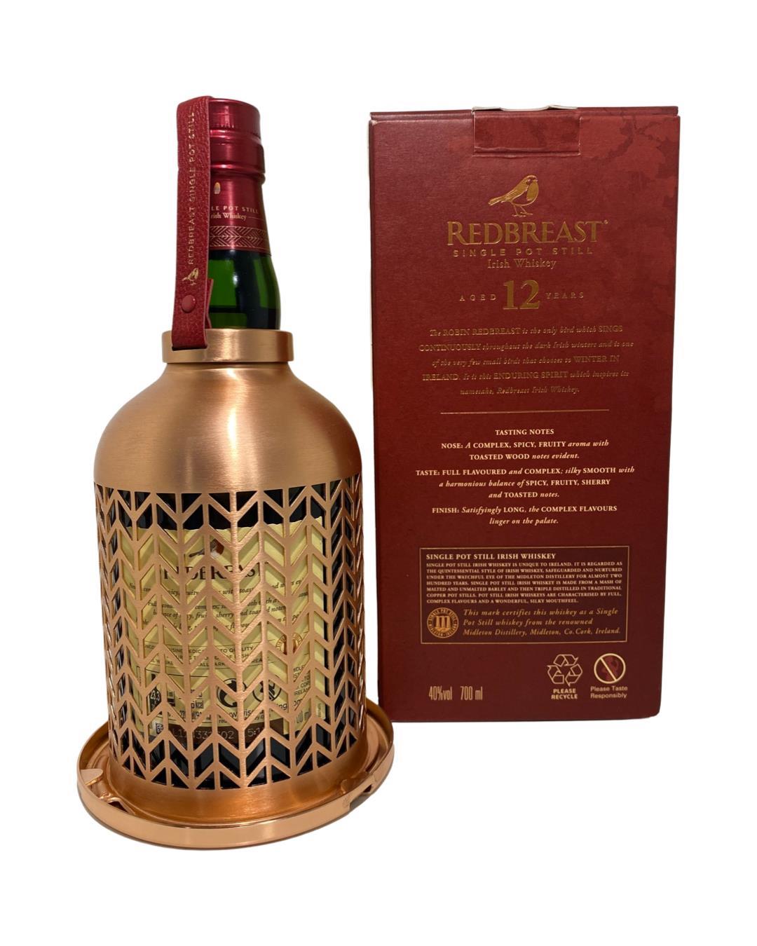 Redbreast 12 boasts the flavour complexity and distinctive qualities of Pot Still whiskey. Matured in a combination of bourbon and sherry casks, the distinctive Redbreast sherry style is a joy to behold in each and every bottle. This is the Limited edition with the birdfeeder cage around the bottle.