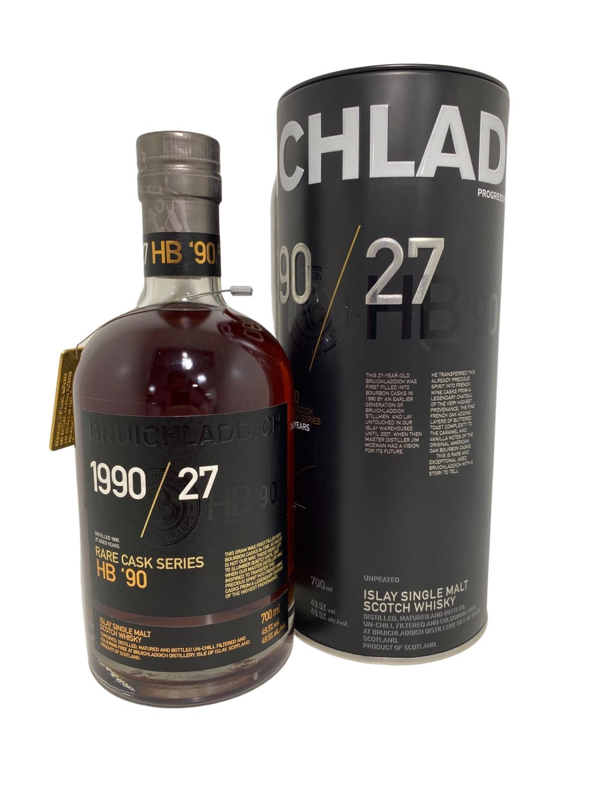 Part of the Rare Cask Series, this has been aged for 27 years. A sherry cask bottling of Bruichladdich called HB '90. This expression was first filled into Bourbon casks before being moved to French wine casks in 2007.One of just 12,000 bottles.