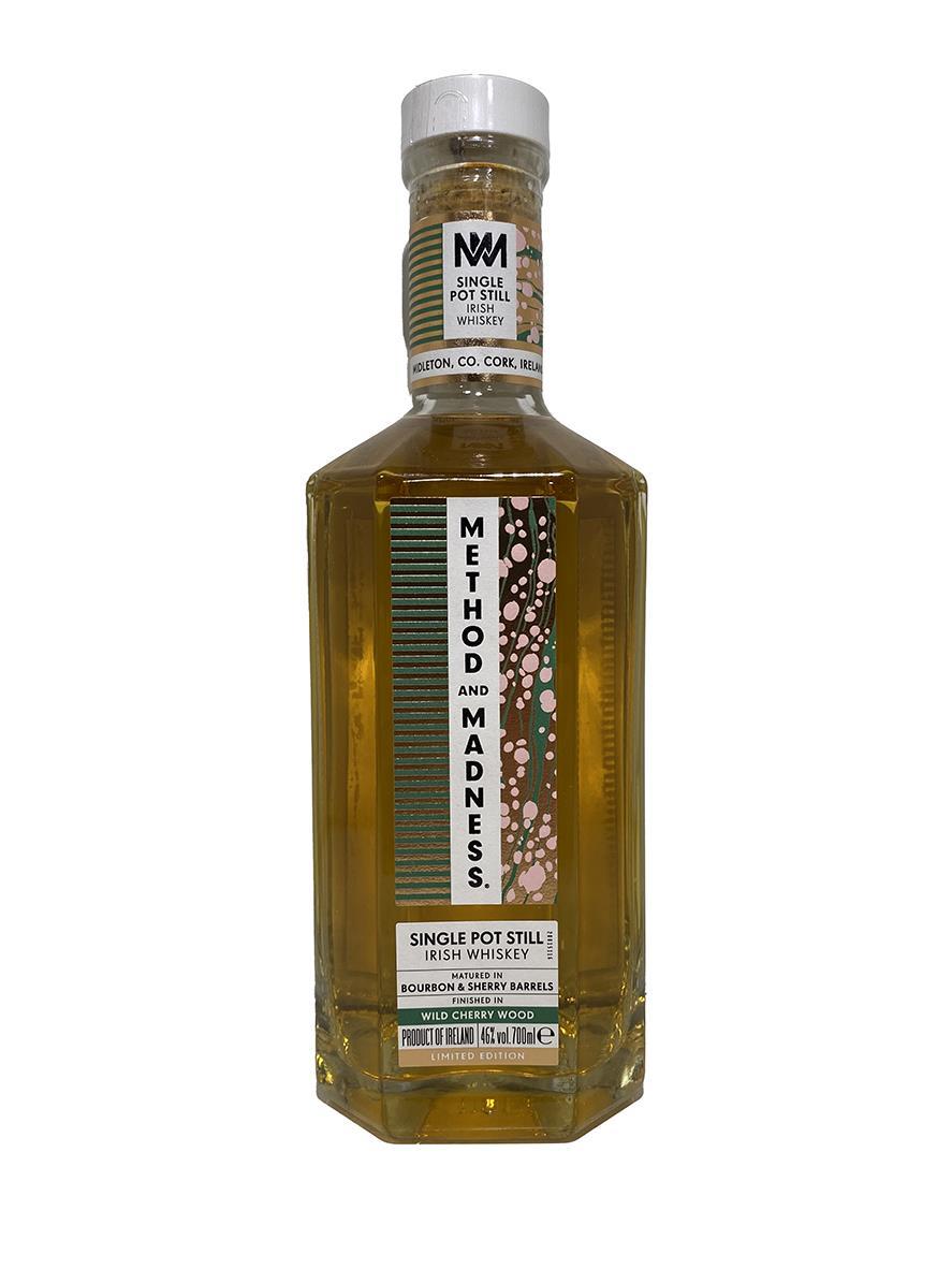 A Method and Madness Single Pot Still Irish Whiskey finished in Wild Cherry Wood. A brave and exciting new approach to whiskey maturation, it marks the first time that a single pot still Irish whiskey has been finished in nine wild cherry wood casks. A bold and fresh whiskey with plenty of complexity and spice.