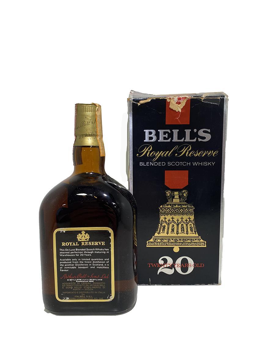 A rare old bottle of Bell's Royal Reserve 20 year old blended Scotch whisky. Now known for their younger whiskies, this dates from the 1980s, when older blends were both more common and popular. The box has seen some ware and tear as can be seen in the photo.