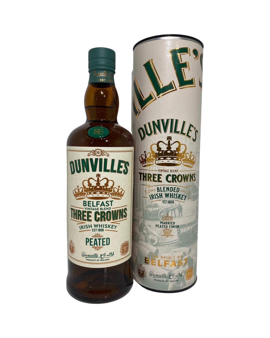 Dunville’s Three Crowns Peated. Comprised of a Single Grain Whiskey, a 10 Year Old Single Malt & a 15 Year Old Oloroso Sherry finished Single Malt which have been married together in a peated cask. A rare, delicately smoked Irish whiskey.
