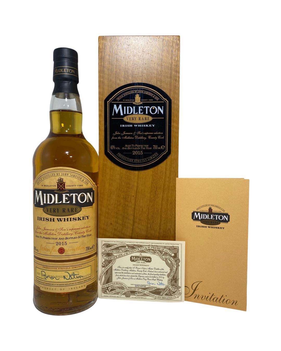 The Midleton Very Rare 2015, is a bottling brought out by the Midleton Distillery in Co. Cork. The ‘Midleton Very Rare’ range was launched in 1984 and a new vintage has been released every year since then. Barry Crockett started off the ‘Midleton Very Rare’ range while he was the Master Distiller of Midleton Distillery, in 2013 Barry Crockett retired from his role of Master Distiller. From 2014 onwards Brian Nation has been creating the ‘Midleton Very Rare’ range, maintaining its role as standard-bearer and pinnacle of Irish Whiskey. The bottle and gift box in great condition also include the cert and distillery invite. The Midleton Very Rare range of whiskeys is a collection of highly regarded Irish whiskeys crafted at the Midleton Distillery in County Cork, Ireland. With a reputation for excellence, these whiskeys are known for their exceptional quality, craftsmanship, and limited availability. Characterized by smoothness, complexity, and depth of flavour, Midleton Very Rare often exhibits notes of ripe fruits, honey, vanilla, spices, and oak. The component casks are typically aged for around 12-27 years but each yearly batch is unique and for this reason the whiskeys are highly collectible. To this day the Midleton Very Rare series is still regarded as the pinnacle and benchmark for ultra-premium blended Irish whiskeys.