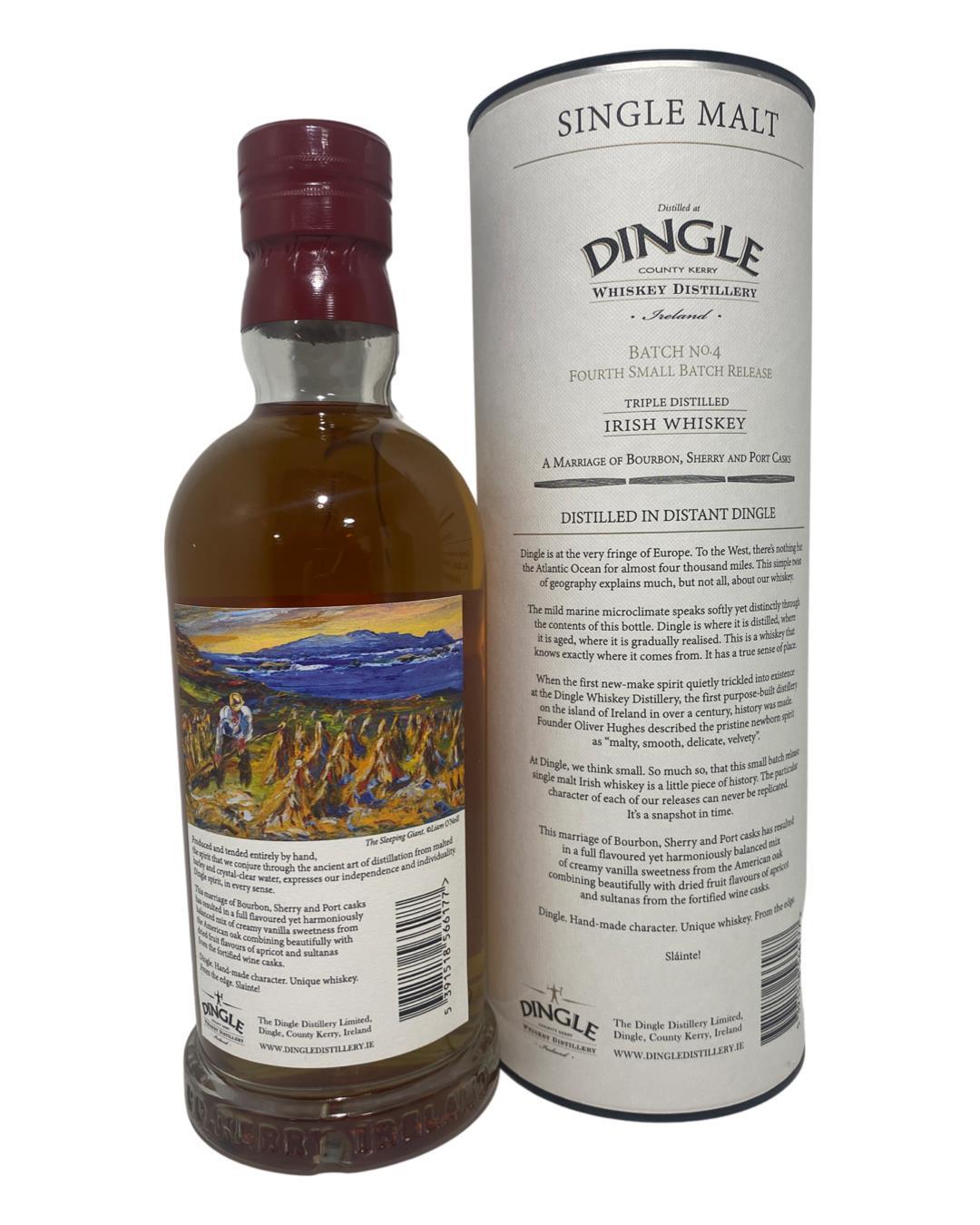 Single Malt Batch 4 from the Dingle Distillery in Co. Kerry. This whiskey has been carefully matured in a combination of of Bourbon, Port and Sherry casks, resulting in a full flavoured, balanced mix of vanilla, oak, dried fruit, apricot and sultanas. Established in 2012, Dingle has quickly gained recognition for its exceptional spirits and commitment to traditional craftsmanship. The distillery focuses on producing small-batch, handcrafted whiskies that embody the rich heritage of Irish whiskey-making.