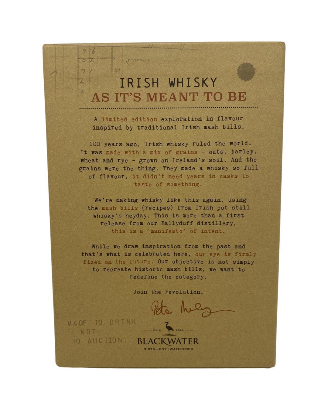 A special limited first release from Blackwater Distillery that explores the historical mashbills of old. Each of the four whiskeys included is the recreation of a style once made in Ireland and includes different mixes of grains in each bottling.