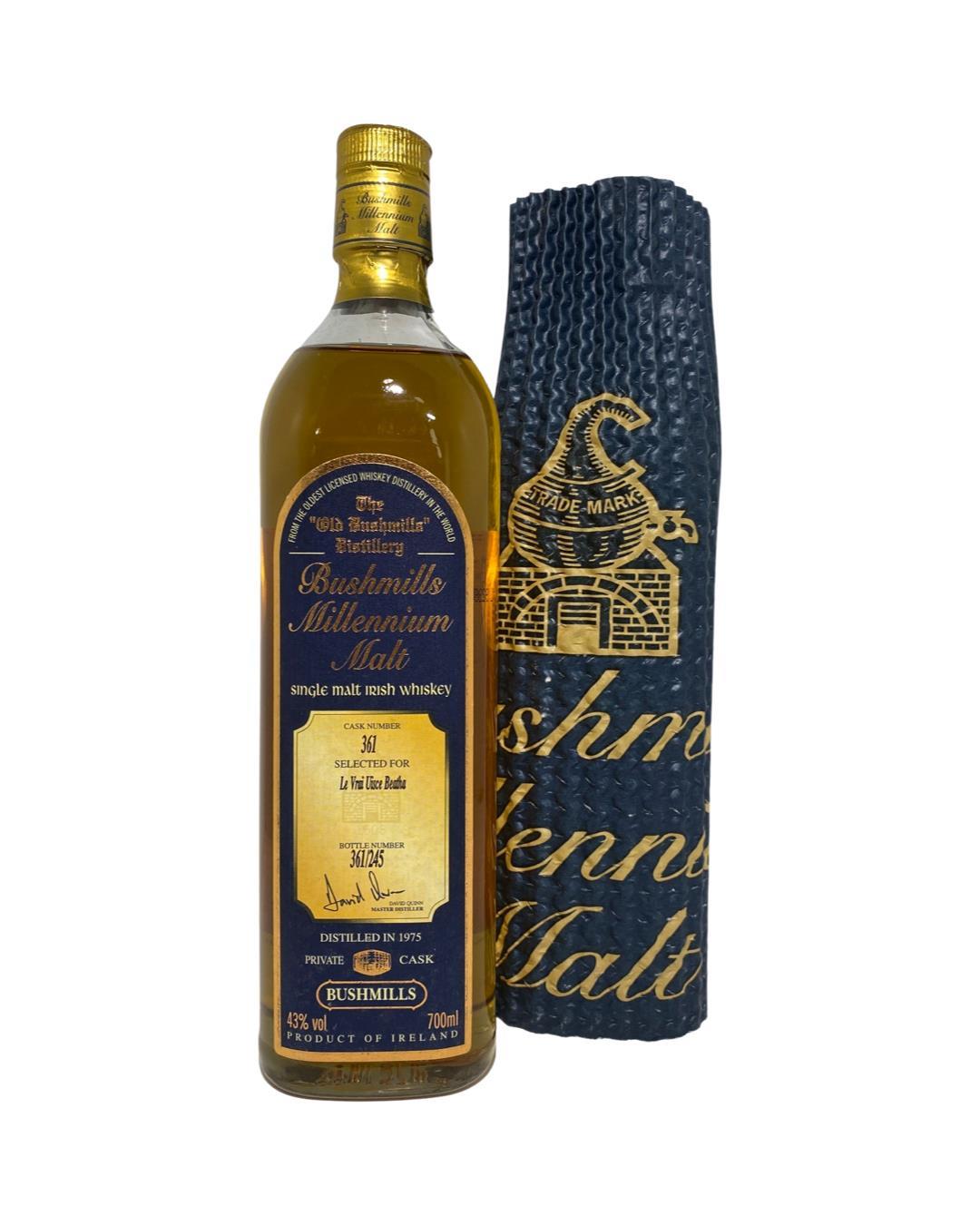 This bottle of Bushmills Millennium Single Malt was bottled around the Millennium and what resulted was the longest aged Bushmills whiskey available then, with this exceptional cask being 202.Bushmills Millennium Malt is a series of single cask bottlings from whiskey distilled in 1975 and matured in ex-Bourbon barrels. This unique Bushmills Millennium Malt has come straight from the cask, pure and unfiltered, following the ancient tradition that is whiskey making in Ireland. The addition of water, which flows over the basalt rock from St. Columbs Rill, to bring it to its bottled strength, is the only change Bushmills have made to your whiskey since it began the slow gentle process of maturation in your cask, back in 1975.