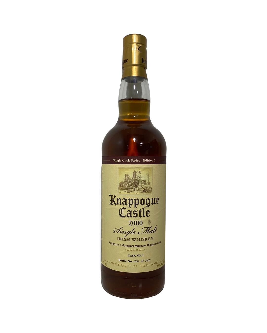 This is the first such bottling in the single cask series from Knappogue Castle.The whiskey was distilled in 2000 and initially matured in a Bourbon cask before being decanted into the red wine barrel in October 2012, it was uncasked in October2014.Cask No. 1. Edition 1.