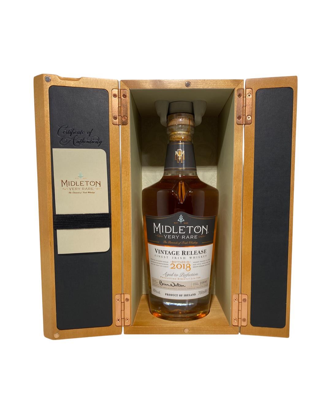 The Midleton Very Rare 2018, is a bottling brought out by the Midleton Distillery in Co. Cork. The ‘Midleton Very Rare’ range was launched in 1984 and a new vintage has been released every year since then. Barry Crockett started off the ‘Midleton Very Rare’ range while he was the Master Distiller of Midleton Distillery, in 2013 Barry Crockett retired from his role of Master Distiller. From 2014 onwards Brian Nation has been creating the ‘Midleton Very Rare’ range, maintaining its role as standard-bearer and pinnacle of Irish Whiskey. The bottle and gift box in great condition also include the cert and distillery invite.