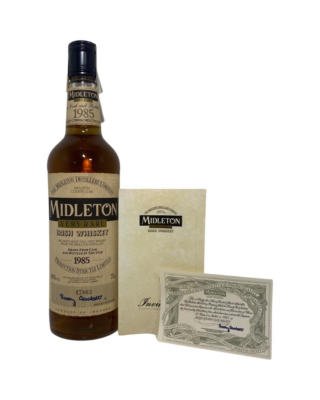 The second year of this now iconic series this is a rare and collectable bottle of Midleton Rare from the 1985 vintage when the master distiller was Barry Crockett. The Midleton Very Rare 1985 is the second edition of the Very Rare Series that began in 1984 whereby a new vintage is released every year. The Midleton Very Rare range of whiskeys is a collection of highly regarded Irish whiskeys crafted at the Midleton Distillery in County Cork, Ireland. With a reputation for excellence, these whiskeys are known for their exceptional quality, craftsmanship, and limited availability. Characterized by smoothness, complexity, and depth of flavour, Midleton Very Rare often exhibits notes of ripe fruits, honey, vanilla, spices, and oak. The component casks are typically aged for around 12-27 years but each yearly batch is unique and for this reason the whiskeys are highly collectible. To this day the Midleton Very Rare series is still regarded as the pinnacle and benchmark for ultra-premium blended Irish whiskeys.
