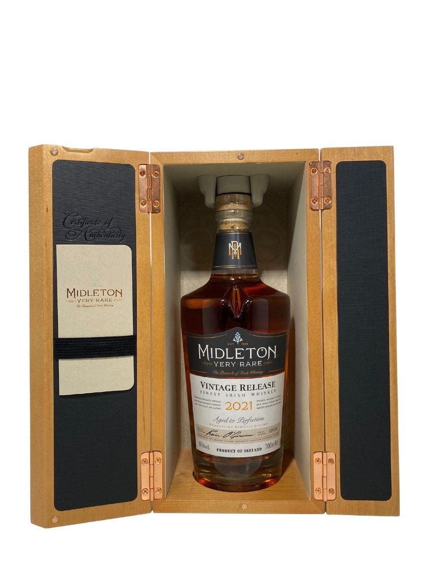 The 2021 edition to Ireland's most premium and beloved whiskey series; Midleton Very Rare. This is the 38th installment and the first release under Kevin O' Gorman appointed Master Distiller of the Midleton Distillery in 2020. Both the bottle and gift box are in very good condition, certificate and distillery invite are also included.Bottle number 12524