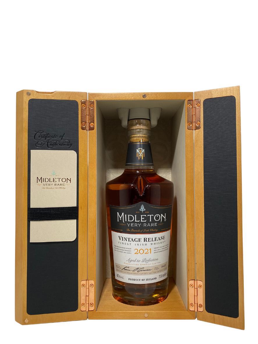 The 2021 edition to Ireland's most premium and beloved whiskey series; Midleton Very Rare. This is the 38th installment and the first release under Kevin O' Gorman appointed Master Distiller of the Midleton Distillery in 2020. Both the bottle and gift box are in very good condition, certificate and distillery invite are also included.Bottle number 14400