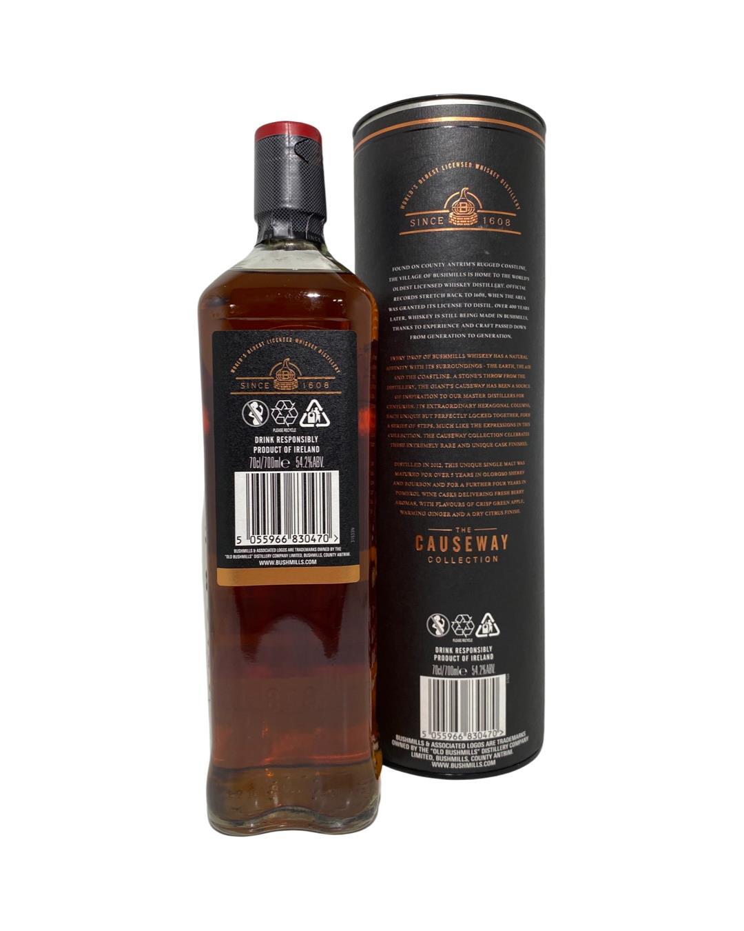 A very exciting release in the ever-popular Bushmills Causeway Collection. This special release was first aged in oloroso sherry butts and bourbon barrels before being finished in rare Pomerol wine casks for a further four years. Pomerol is home to some of the most expensive and sought-after red wines in the world and the smallest of all the major Bordeaux wine appellations.Bushmills Distillery, located in Northern Ireland can trace its roots back to 1608 when the area was given a special license to distil by King James I. The current distillery dates from 1784, although it may have operated illegally before that. Bushmills has had numerous owners over the years with Proximo Spirits, the owners of Jose Cuervo Tequila, now holding the keys to this famous whiskey brand.