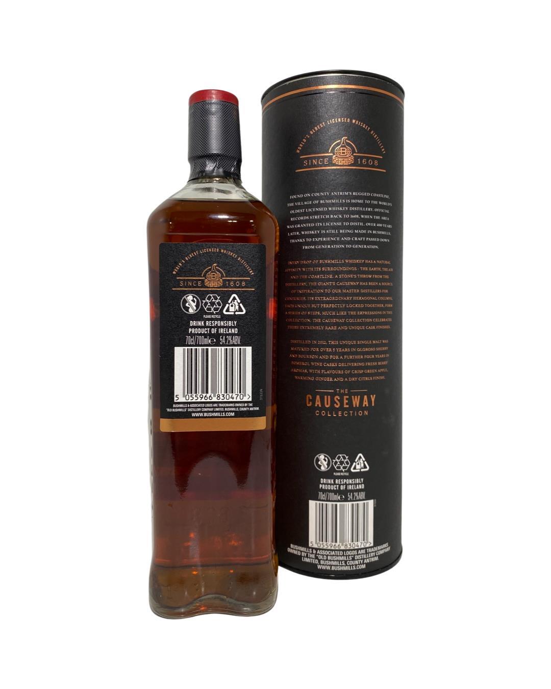 A very exciting release in the ever-popular Bushmills Causeway Collection. This special release was first aged in oloroso sherry butts and bourbon barrels before being finished in rare Pomerol wine casks for a further four years. Pomerol is home to some of the most expensive and sought-after red wines in the world and the smallest of all the major Bordeaux wine appellations.Bushmills Distillery, located in Northern Ireland can trace its roots back to 1608 when the area was given a special license to distil by King James I. The current distillery dates from 1784, although it may have operated illegally before that. Bushmills has had numerous owners over the years with Proximo Spirits, the owners of Jose Cuervo Tequila, now holding the keys to this famous whiskey brand.