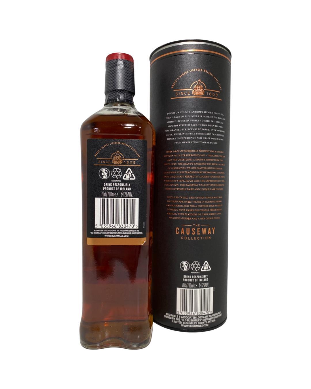 A very exciting release in the ever-popular Bushmills Causeway Collection. This special release was first aged in oloroso sherry butts and bourbon barrels before being finished in rare Pomerol wine casks for a further four years. Pomerol is home to some of the most expensive and sought-after red wines in the world and the smallest of all the major Bordeaux wine appellations.Bushmills Distillery, located in Northern Ireland can trace its roots back to 1608 when the area was given a special license to distil by King James I. The current distillery dates from 1784, although it may have operated illegally before that. Bushmills has had numerous owners over the years with Proximo Spirits, the owners of Jose Cuervo Tequila, now holding the keys to this famous whiskey brand.