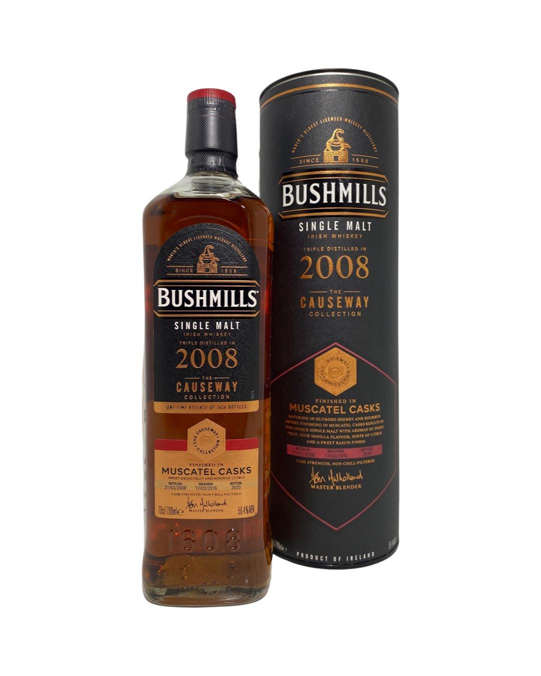 One of the first two Bushmills Causeway Collection Rare cask finish series exclusive to the island of Ireland only 1454 bottles. This 2008 distilled single malt is matured quietly for almost eight years in Oloroso Sherry butts and bourbon barrels, then finished for four years in muscatel casks to impart luscious ripe fruit notes and deep sweetness.