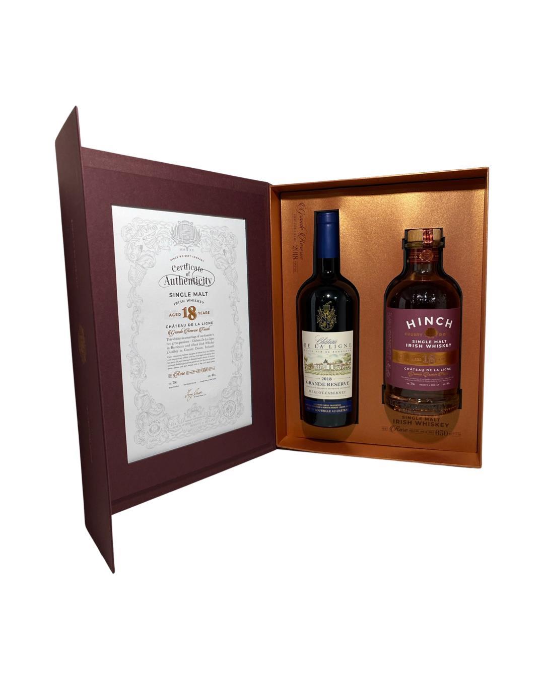 This Gift Presentation Box is a marriage of founder Terry Cross’s two great passions – Hinch Irish Whiskey distillery in County Down, Ireland and Cháteau De La Ligne in Bordeaux, France.Casks containing the Cháteau's first ever vintage of Grande Reserve, both Cabernet Sauvignon & Merlot, were emptied and refilled with fine Irish Single Malt whiskey that has spent 18 years maturing in Kentucky bourbon barrels. The addition of a further six month finishing period in the Grande Reserve wine casks has delivered this majestic whiskey for you to enjoy.