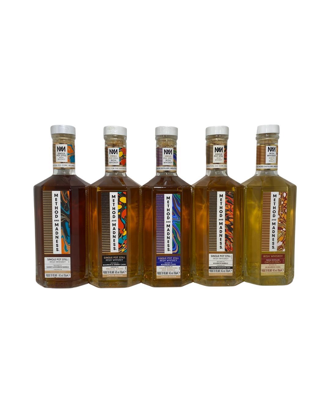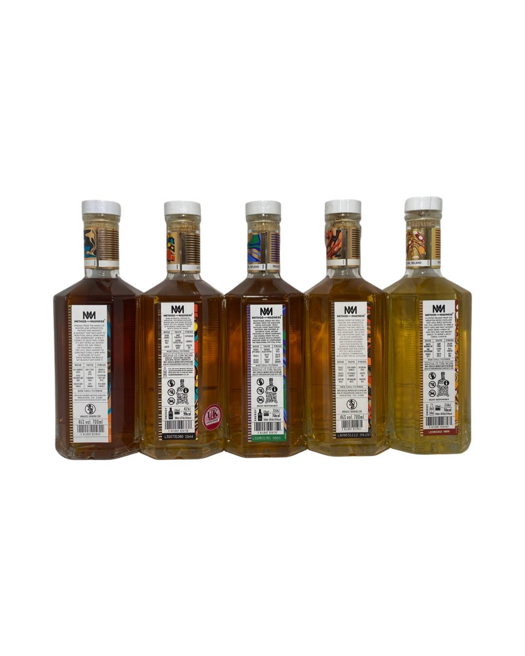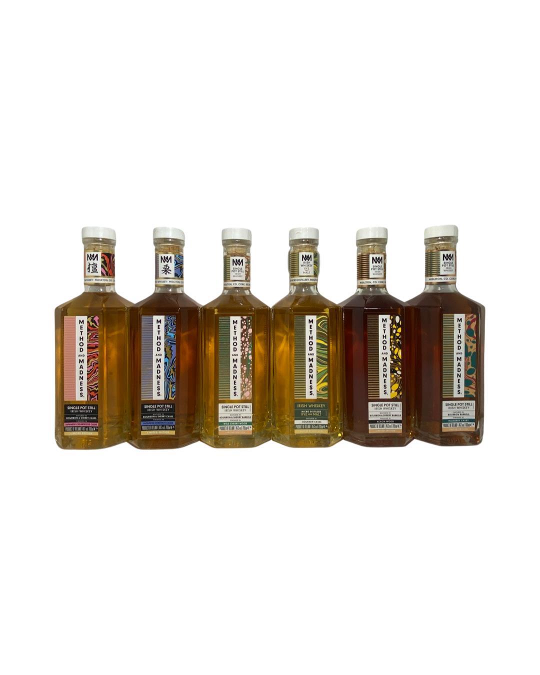 A collection of 11 bottles from the Method and Madness range with 9 being Single Pot Still. This includes finishes in Japanes Cedarwood,Japanese Chestnut,Wild Cherry,Acacia Wood, Mulbery Casks,French Chestnut, Mezcal Casks, Virgin Garryana Oak, Virgin Hungarian,Oats and Malt, and Rye and Malt. Perfect for fans and Collectors of Method and Madness.